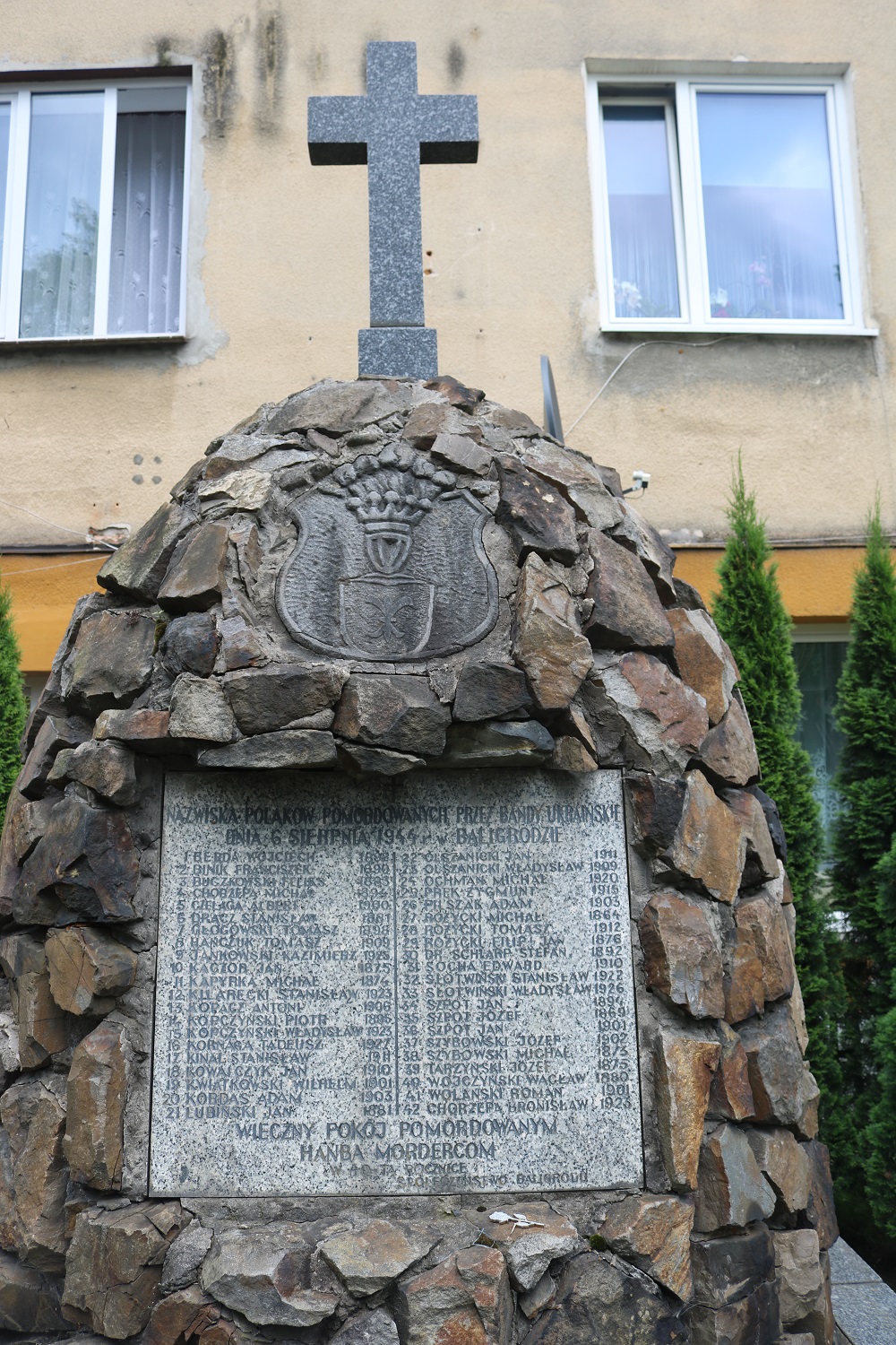 W Baligrodzie powiat leski na pomniku upamietniającym poległych z rąk UPA mieszkańców, którzy zginęli w 1944 r.: