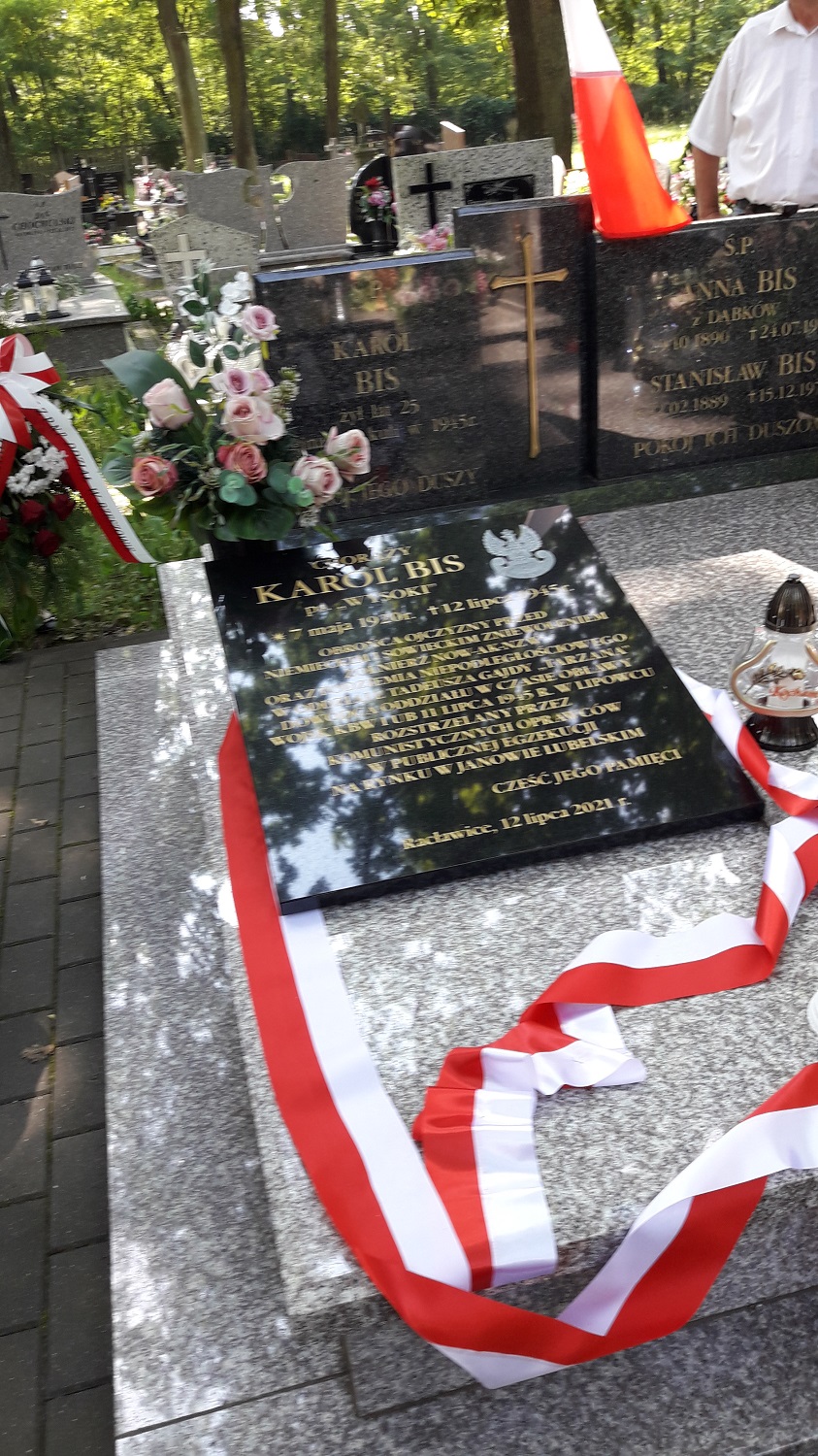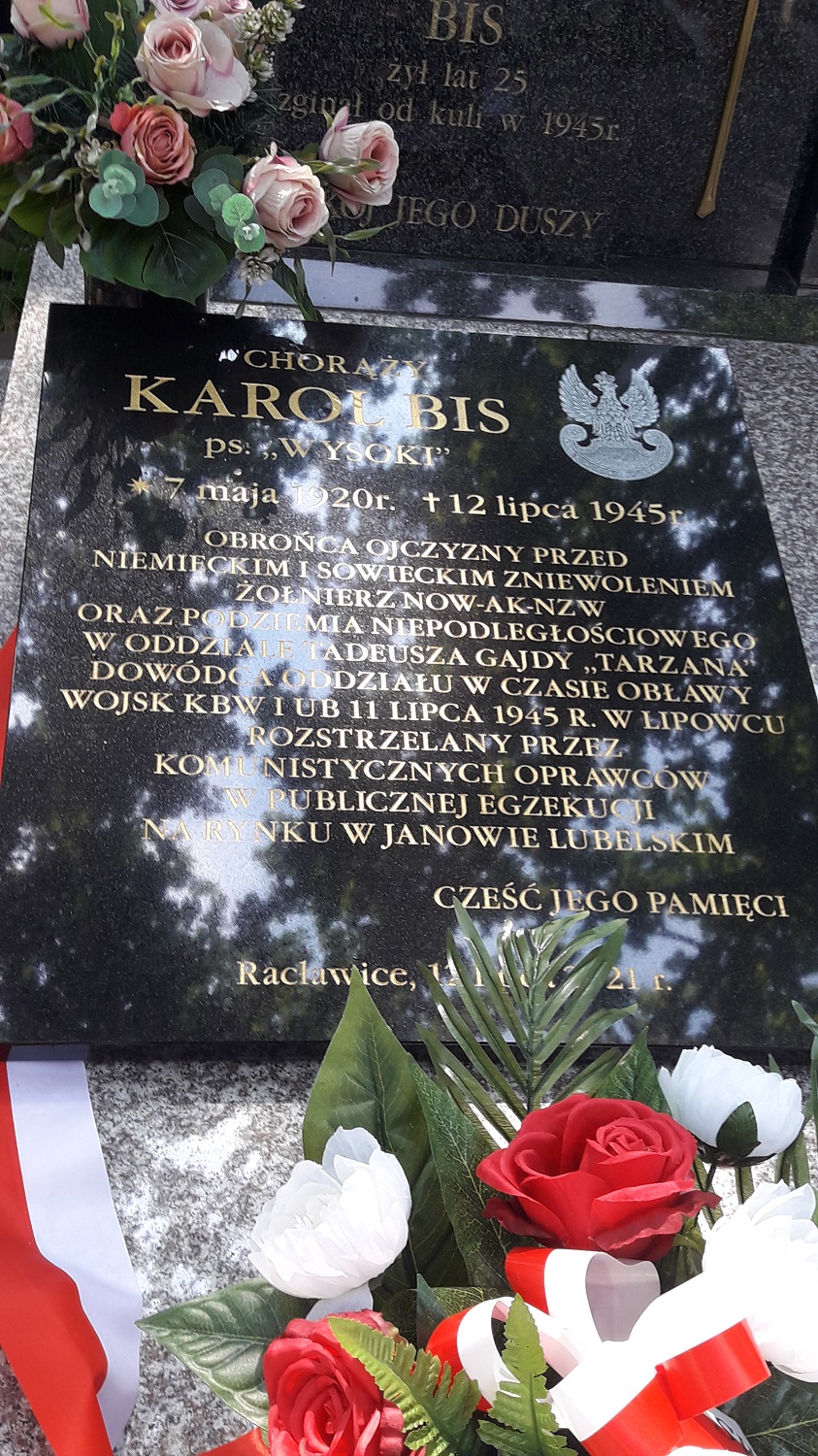 12 lipca 2021 r. na cmentarzu parafialnym w Racławicach miało miejsce uroczyste poświęcenie i odsłonięcie tablicy nagrobnej poświęconej chor. Karolowi Bisowi ps. „Wysoki” żołnierzowi NOW-AK i oddziału leśnego NZW pod dow. Tadeusza Gajdy „Tarzana”, zamordowanego 12 lipca 1945 r. w publicznej egzekucji w Janowie Lubelskim.