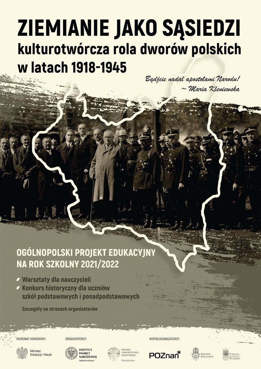 Oddział IPN w Krakowie, Polskie Towarzystwo Ziemiańskie Oddział Kraków, Biblioteka Raczyńskich w Poznaniu oraz Fundacja im. Zofii i Jana Włodków w Krakowie zapraszają na debatę historyków o znaczeniu ziemiaństwa dla polskiego społeczeństwa w latach 1914-1945. Rozmowa, którą będzie można śledzić on-line na platformie Zoom, odbędzie się 1 grudnia 2021 r. w godz. 16.00-17.30.