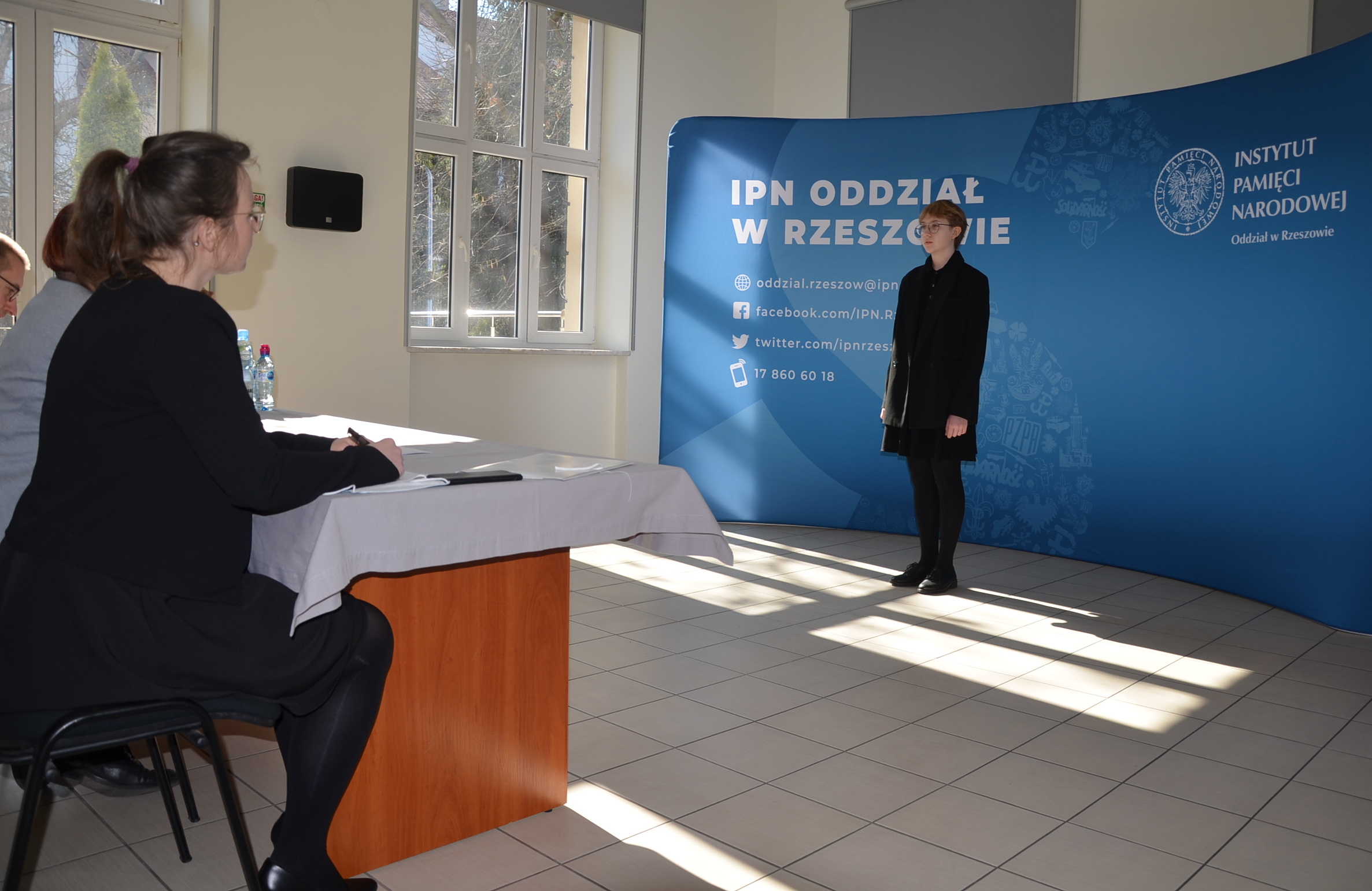 W konkursie wystąpiło 6 reprezentantów z podkarpackich szkół, w tym m.in. z Rzeszowa, Jarosławia, Dębicy, Gniewczyny Łańcuckiej i Centrum Kultury i Bibliotek w Dębicy. Komisja konkursowa w składzie: dr hab. Elżbieta Rączy (OBBH), Katarzyna Hudzicka - Chochorowska (OBEN ) oraz  KrSzczepański (WDK Rzeszów) oceniła recytację wybranych przez uczestników utworów prozy i poezji.