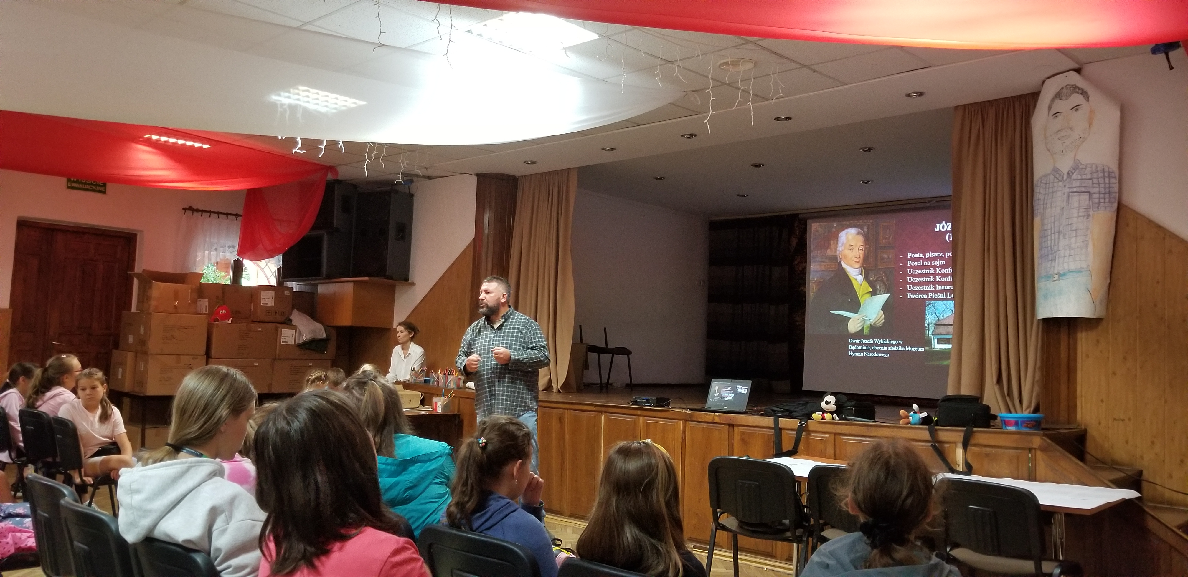Po raz kolejny jesteśmy obecni na turnusie wypoczynkowym dla dzieci w Ośrodku Caritas w Myczkowcach. W tym roku prowadzimy zajęcia „Z pieśnią przez wieki – historia polskiego hymnu w związku z 200 rocznicą śmierci Józefa Wybickiego”. W pierwszej części spotkania odbyła się prelekcja o Józefie Wybickim, okolicznościach powstania „Mazurka Dąbrowskiego”, jego treści i znaczeniu dla kolejnych pokoleń Polaków.