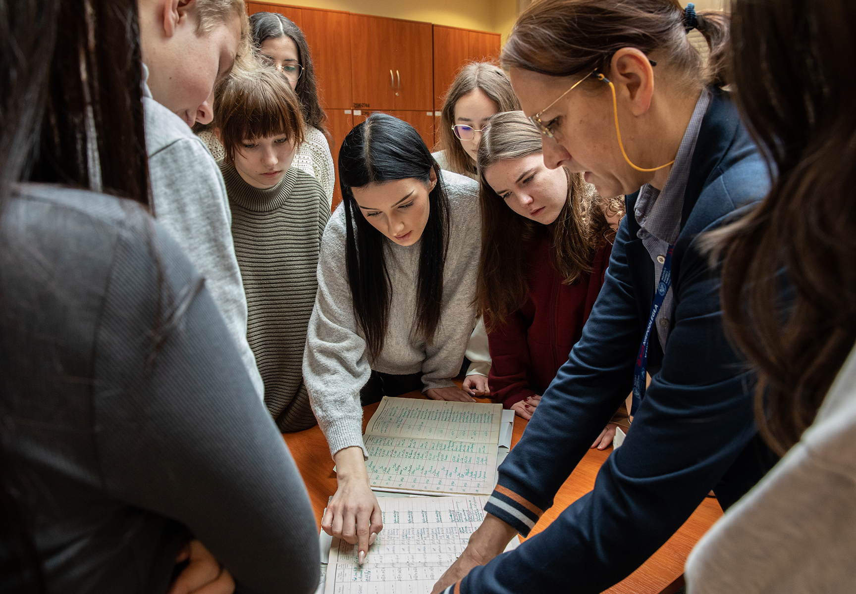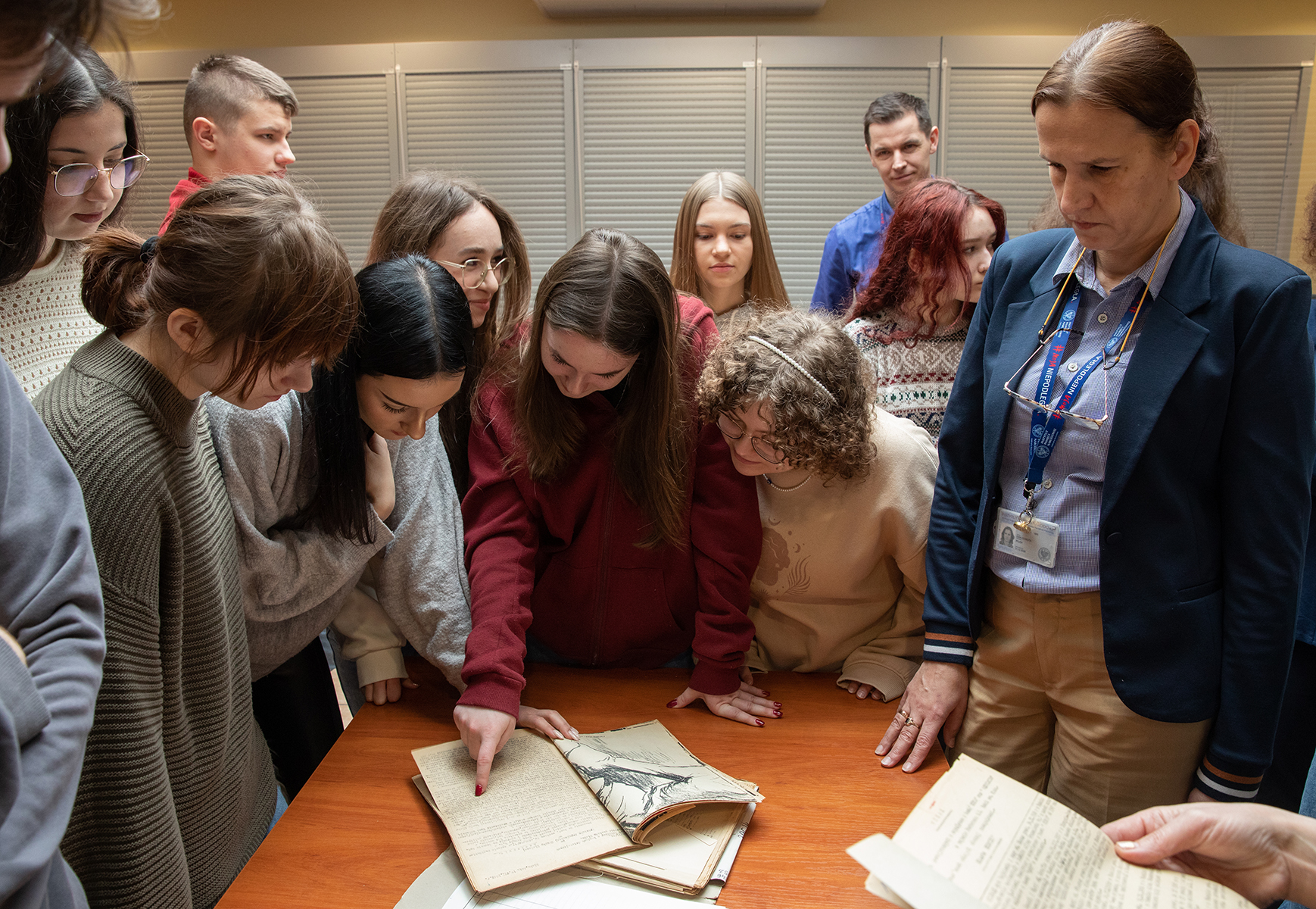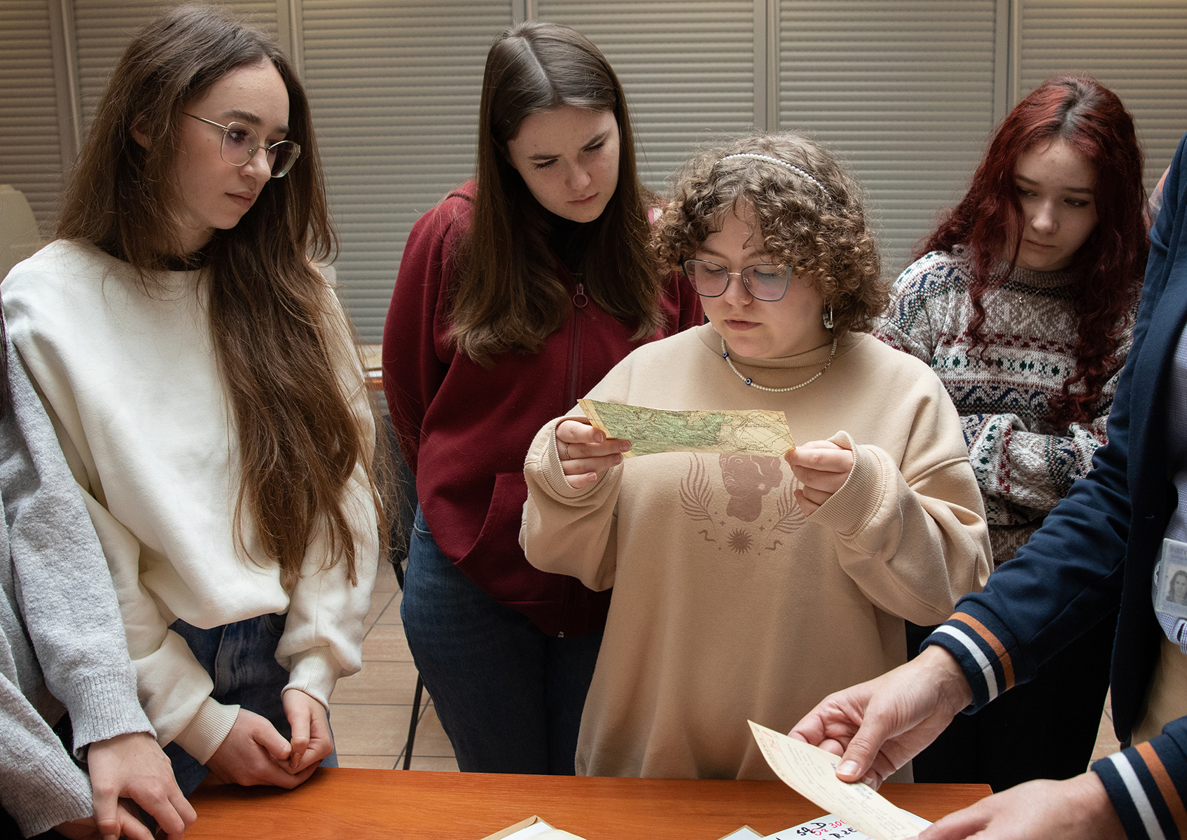 Młodzież miała również możliwość zwiedzenia magazynów archiwalnych. Joanna Kublicka kierownik Referatu GOiOM opowiedziała o warunkach przechowywania, zabezpieczania i konserwacji dokumentów oraz przygotowania oryginałów akt do udostępnienia w czytelni.