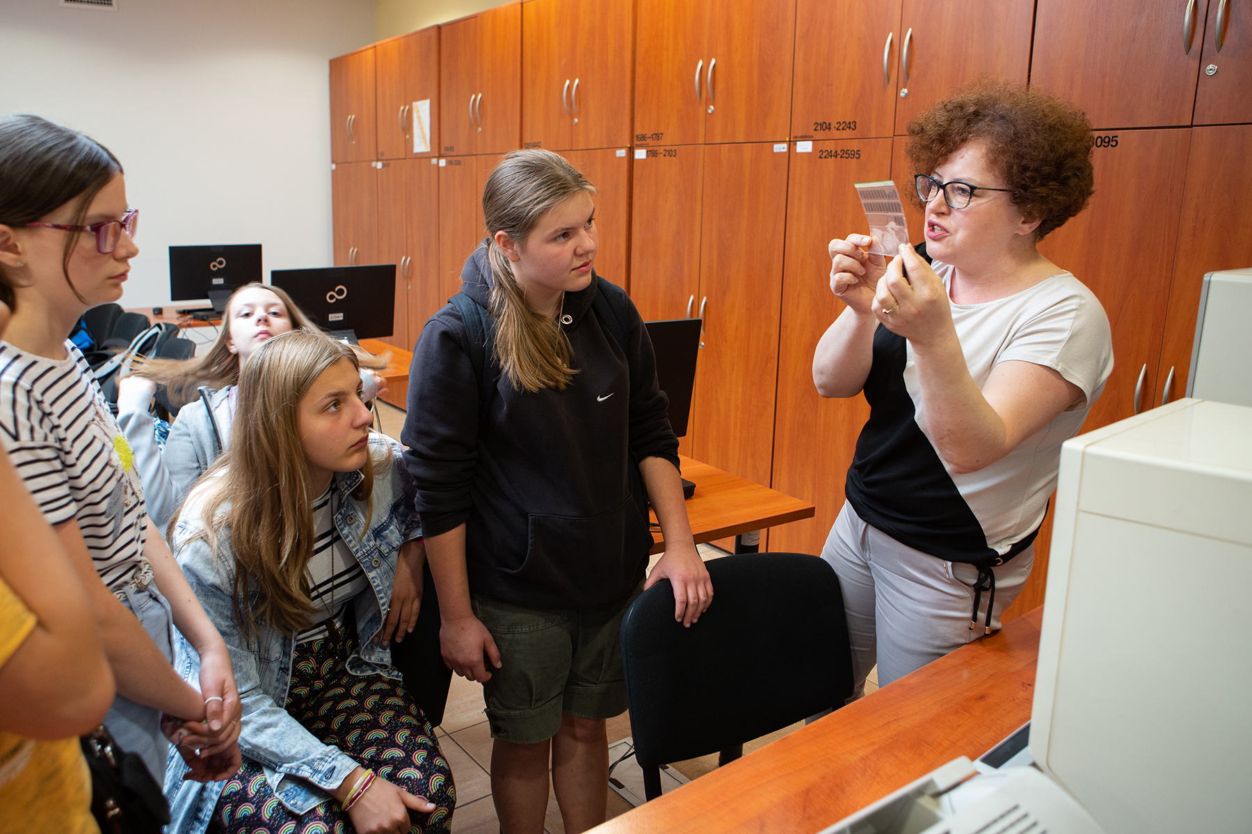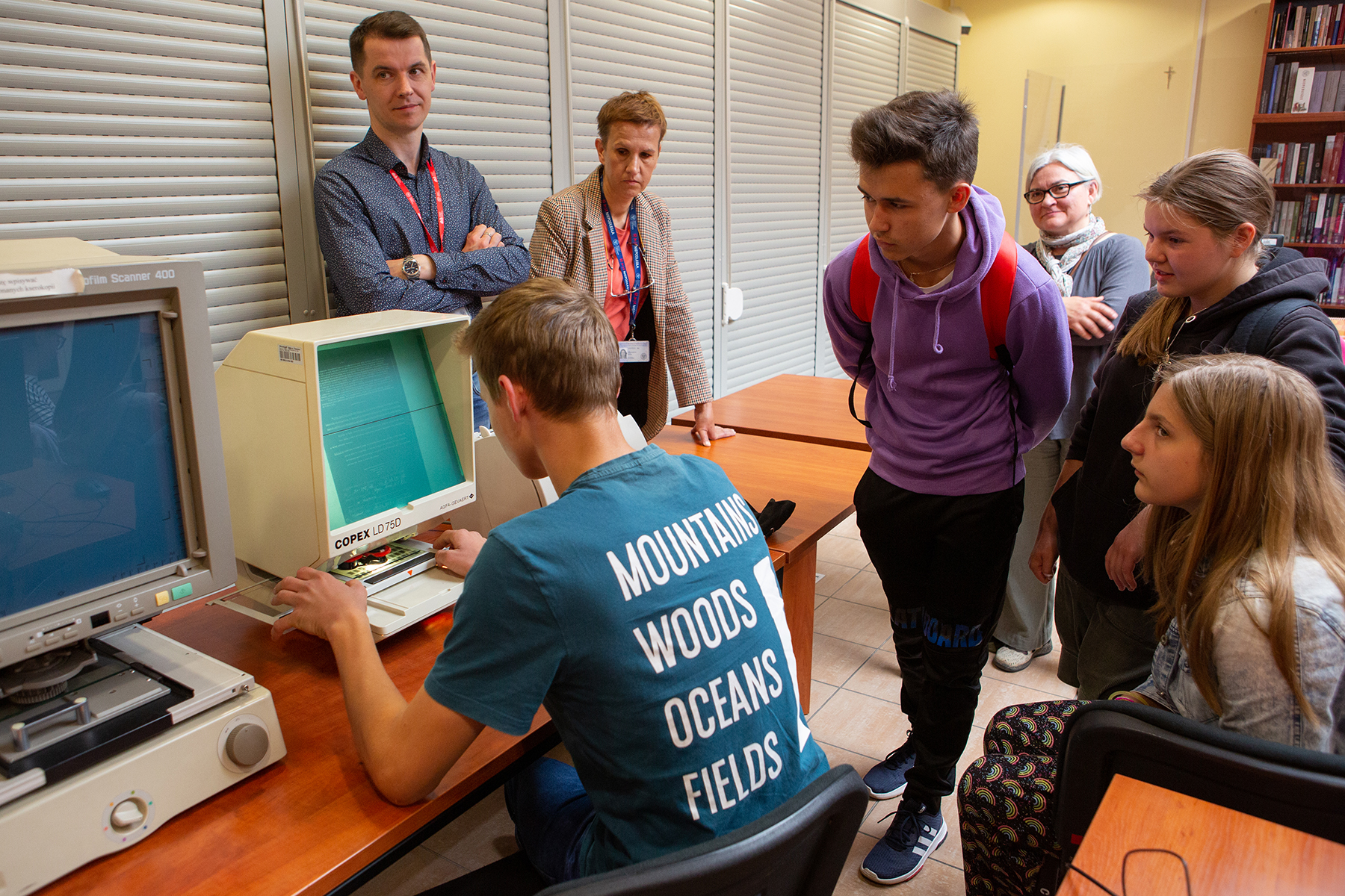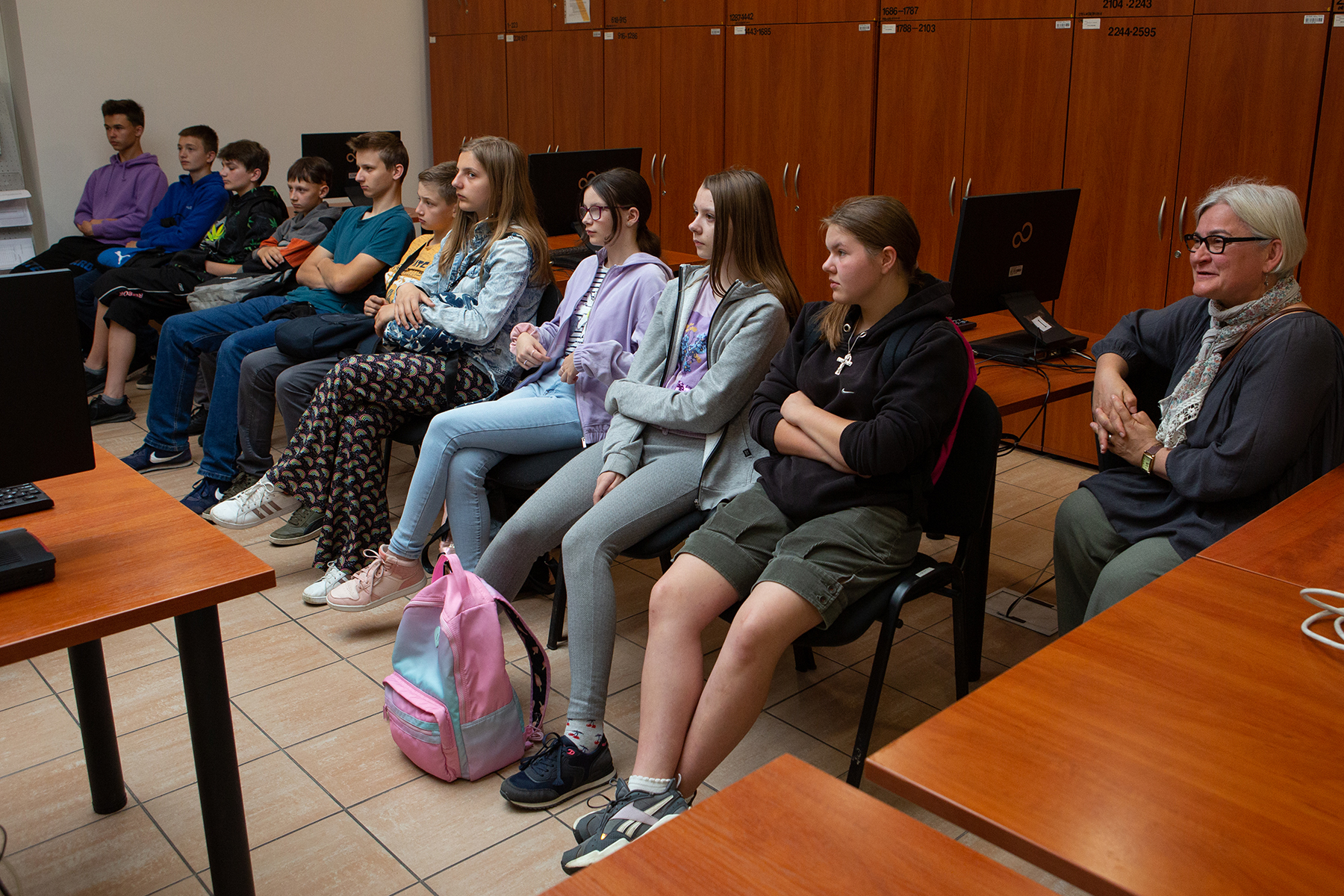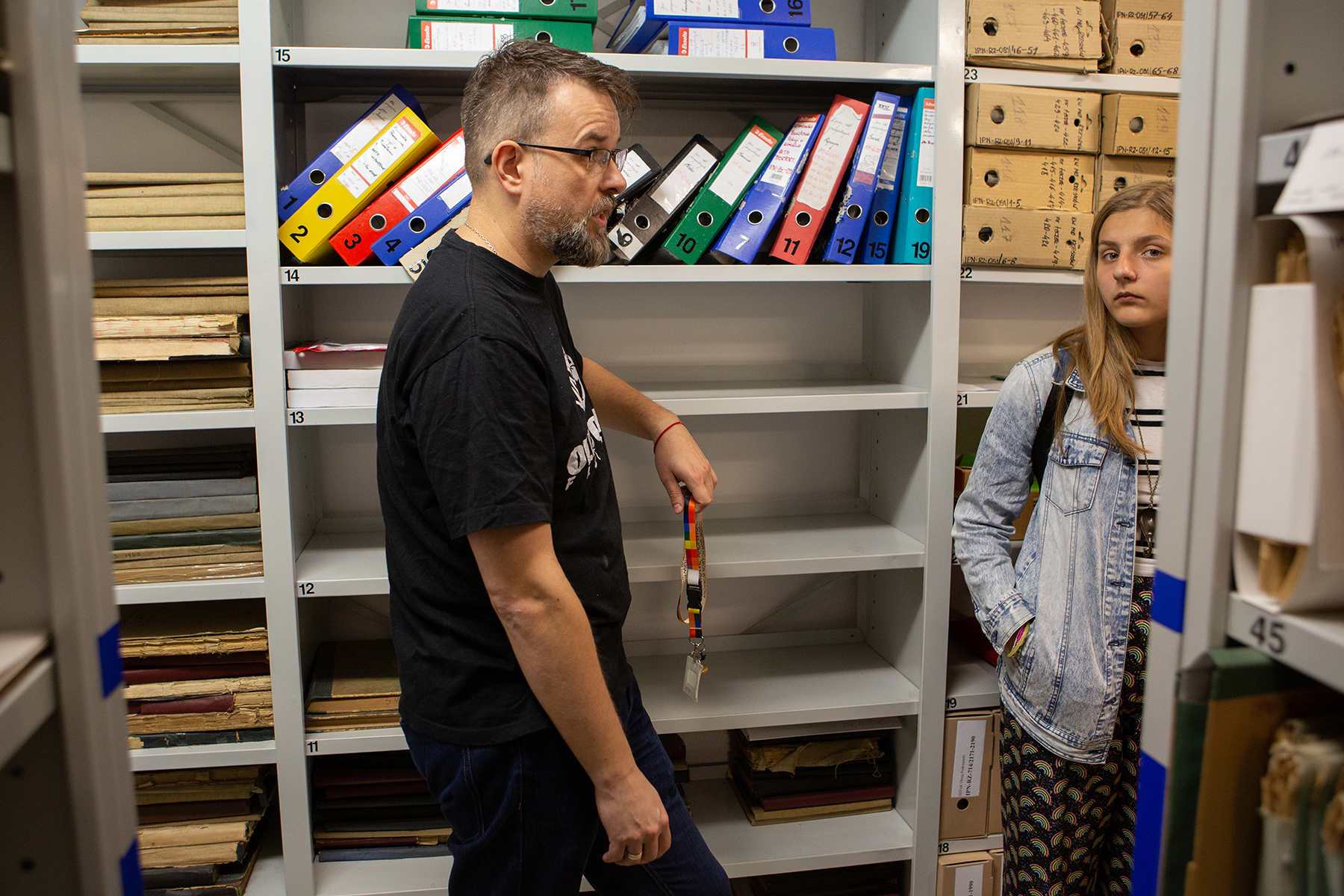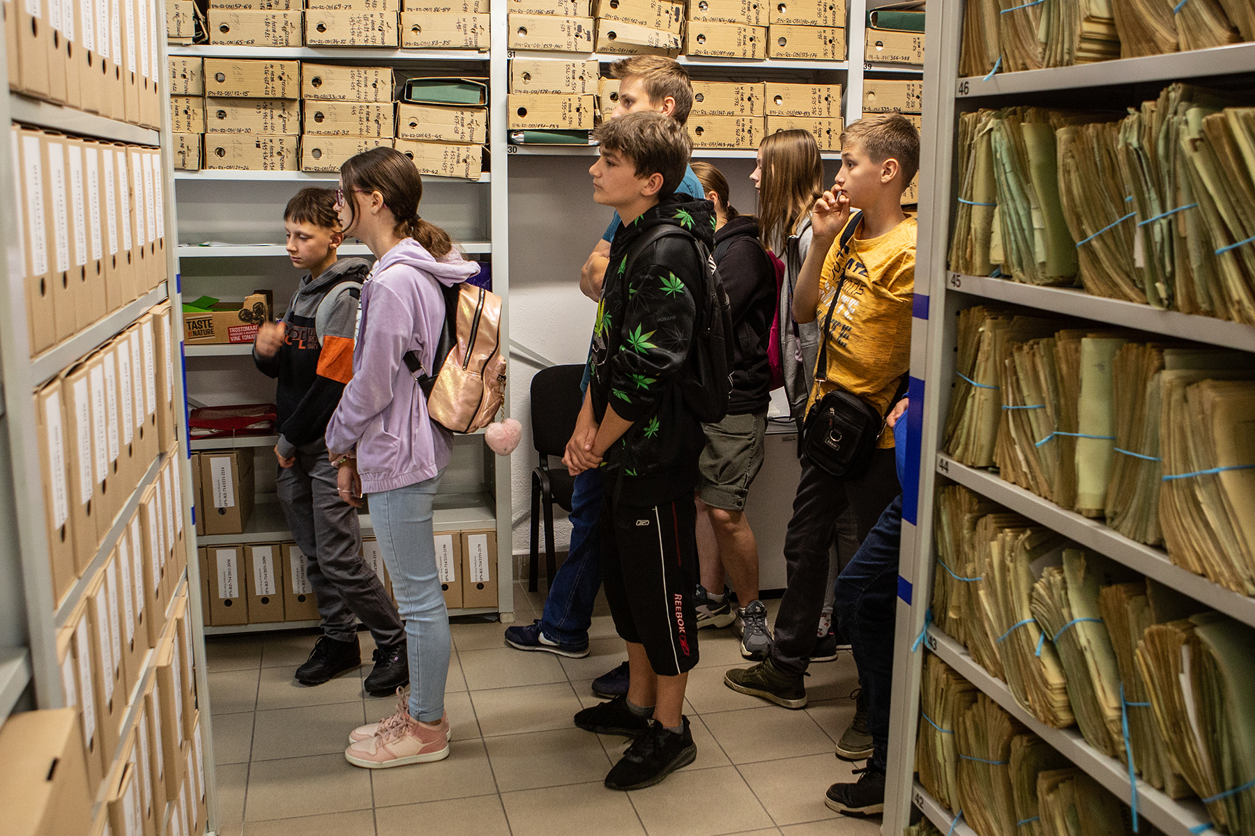 Młodzież miała również możliwość zwiedzenia magazynów archiwalnych. Marcin Zarębski przedstawił warunki i sposób przechowywania dokumentów, a także metody ich zabezpieczania.