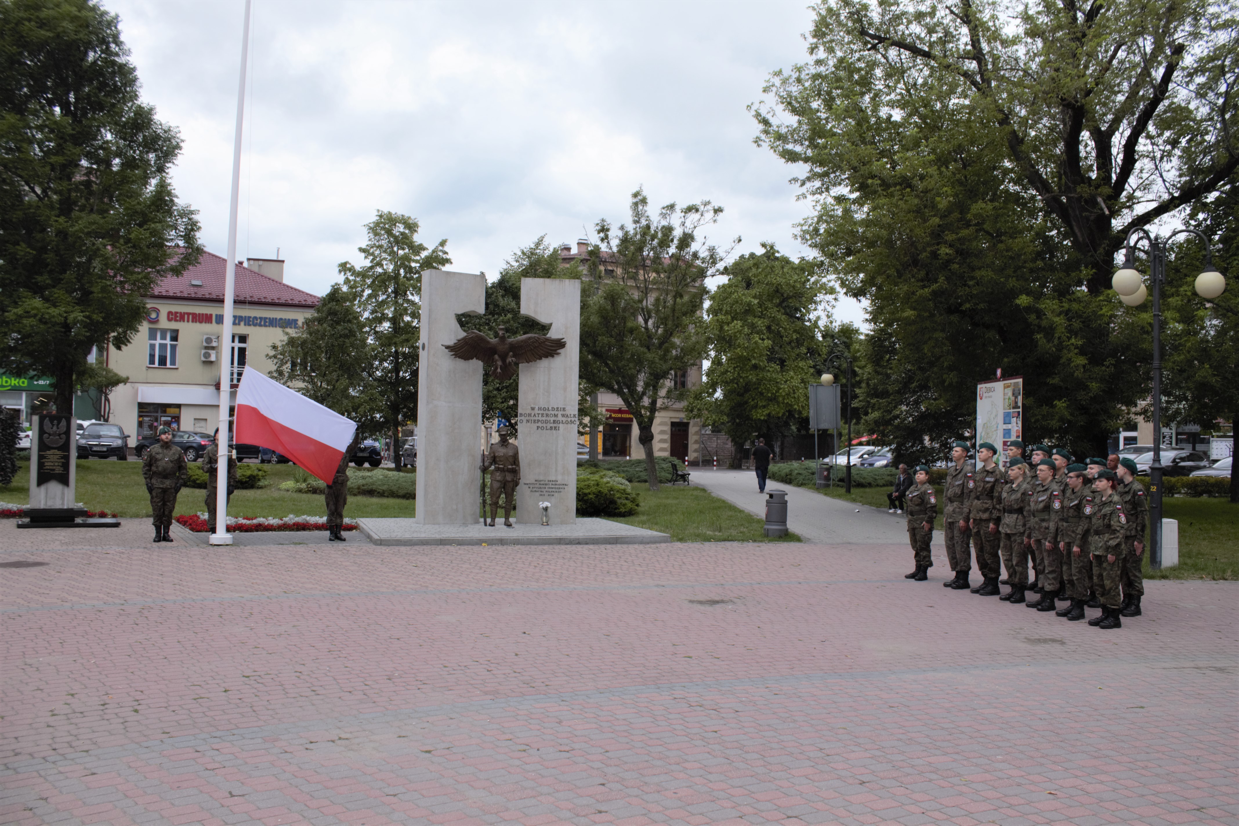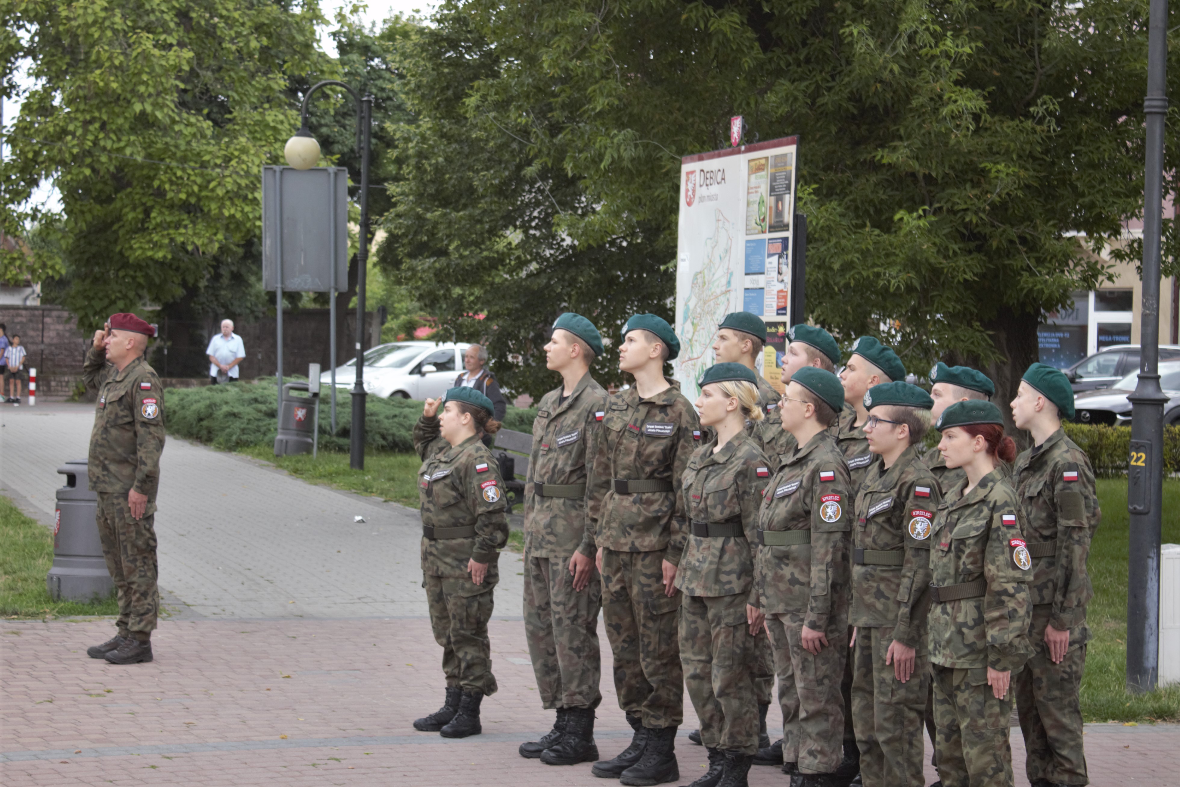 Po południu, w ramach obchodów Narodowego Dnia Pamięci Powstania Warszawskiego, goście wraz z władzami miasta na czele z Mariuszem Szewczykiem wraz z zastępcą Maciejem Małozięciem, mł. insp. ZS Andrzejem Lisem oraz dr Jackiem Magdoniem – historykiem IPN w Rzeszowie złożyli kwiaty pod Pomnikiem Niepodległości na Rynku w Dębicy. Na pamiątkę godziny „W”, kiedy o 17.00 zawyły syreny alarmowe, oddali hołd i uczcili pamięć bohaterskich mieszkańców stolicy oraz żołnierzy Podziemnego Państwa Polskiego, poległych i pomordowanych w czasie prowadzonych walk na terenie miasta Dębicy i powiatu dębickiego w 1944 r. Do zebranych dębiczan zwrócili się goście: prof. Paweł H. Dembiński oraz pan Wojciech Starowieyski z Krakowa – syn Powstańca Warszawskiego i wnuk bł. Stanisława Starowieyskiego – kawalera Virtuti Militari i patrona Akcji Katolickiej. Za udział w uroczystościach podziękowali uczestnikom włodarze miasta oraz pracownik IPN Oddział w Rzeszowie dr Jacek Magdoń, wyrażając szczególnie uznanie młodzieży ze Związku Strzeleckiego „Strzelec” JP w Dębicy, która wystawiła poczet flagowy oraz pododdział honorowy.