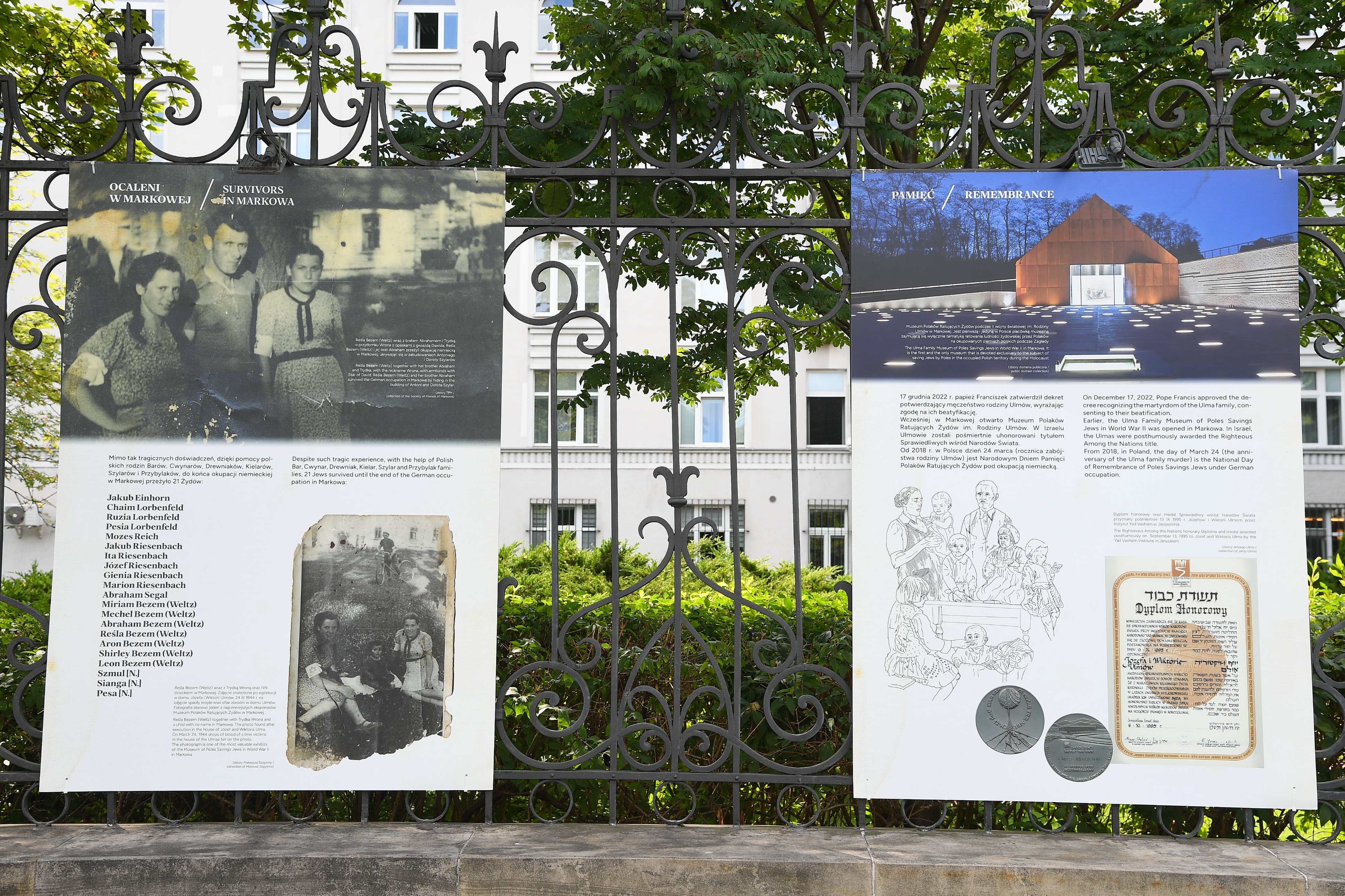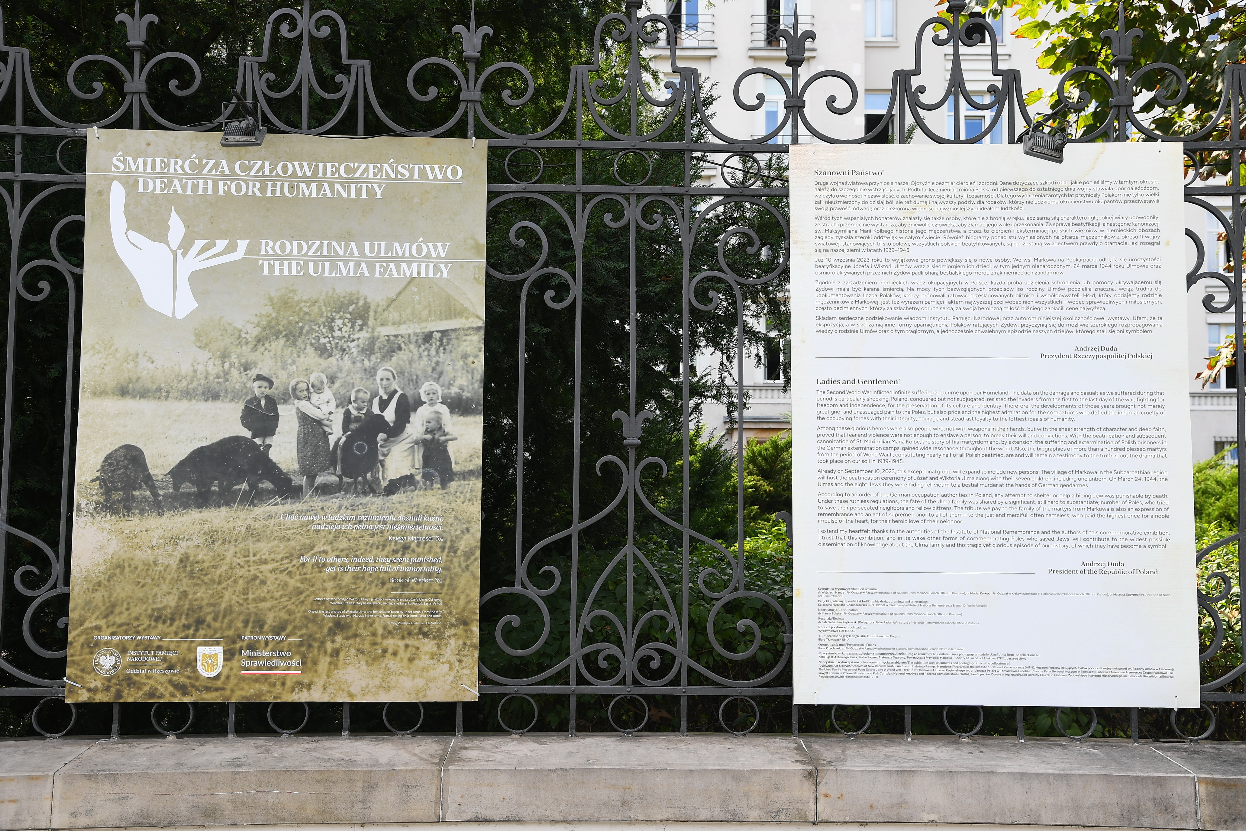 Od 1 września ekspozycję można obejrzeć w galerii plenerowej, przed budynkiem Ministerstwa Sprawiedliwości, przy Al. Ujazdowskich 11 w Warszawie.Wobec heroicznej postawy rodziny Ulmów nie sposób przejść obojętnie. Siłą człowieczeństwa, głębokiej wiary i prawdziwej miłości bliźniego pokonali barbarzyńską przemoc i nienawiść niemieckich okupantów. 10 września 2023 roku do grona beatyfikowanych Polaków dołączą Józef i Wiktoria Ulmowie z podkarpackiej wsi Markowa (powiat łańcucki) wraz z siedmiorgiem ich dzieci, w tym jednym nienarodzonym. Proces beatyfikacyjny wykazał, że motywacją do ofiarnego pomagania Żydom była miłość do ludzi płynąca z wiary. W osobistym egzemplarzu Pisma Świętego Józef Ulma na czerwono podkreślił wersety: „miłość Pana Boga i miłość bliźniego” oraz „miłosierny Samarytanin”. Prezentowana przez Ministerstwo Sprawiedliwości wystawa ukazuje historię bohaterskiej polskiej rodziny przyszłych świętych.