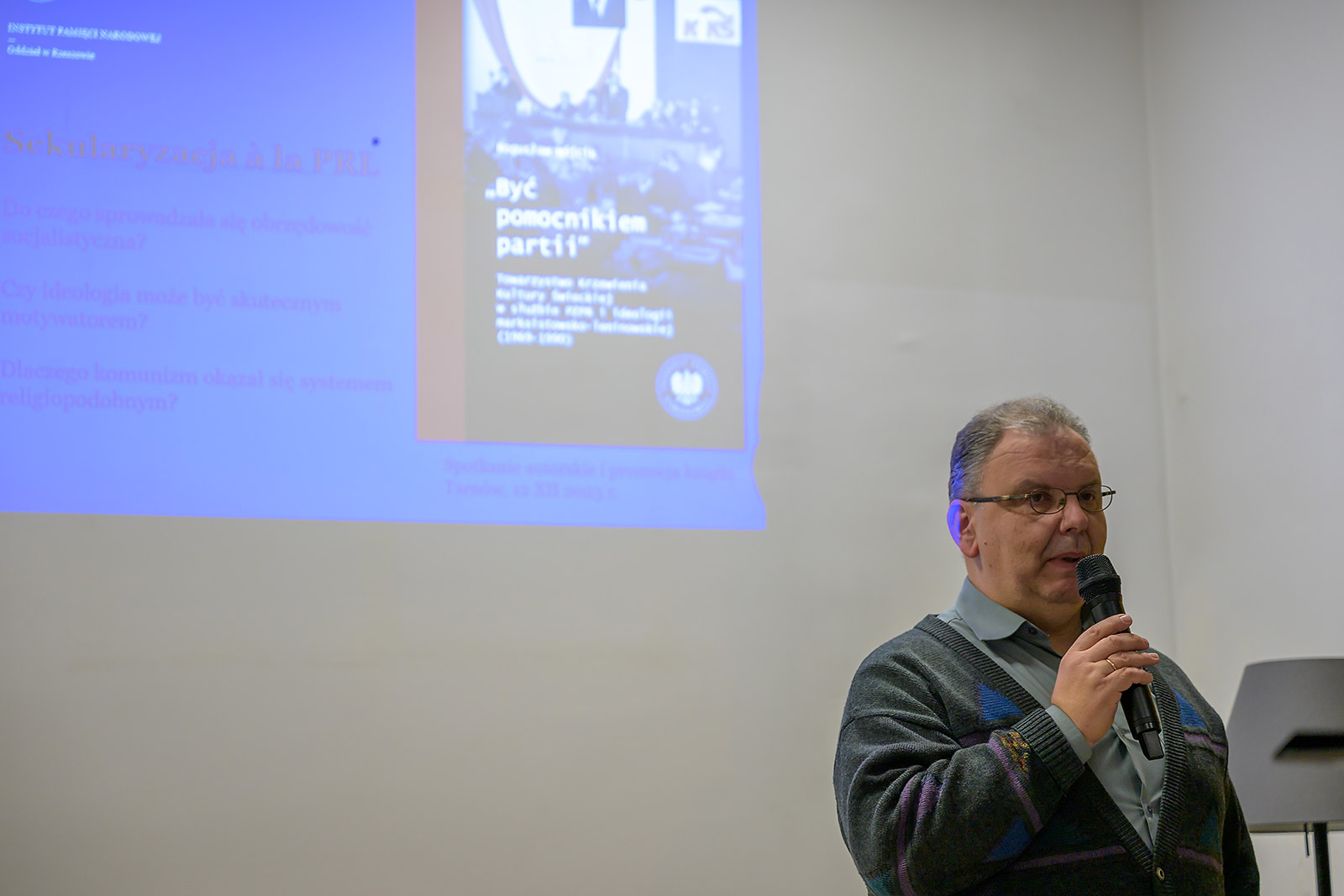 Spotkanie autorskie z dr. Bogusławem Wójcikiem, historykiem z Instytut Pamięci Narodowej Oddział w Rzeszowie, związane z promocją jego najnowszej książki pt. „Być pomocnikiem partii”, które odbyło się 12 grudnia 2023 r. w Czytelni Czasopism Miejskiej Biblioteki Publicznej w Tarnowie.