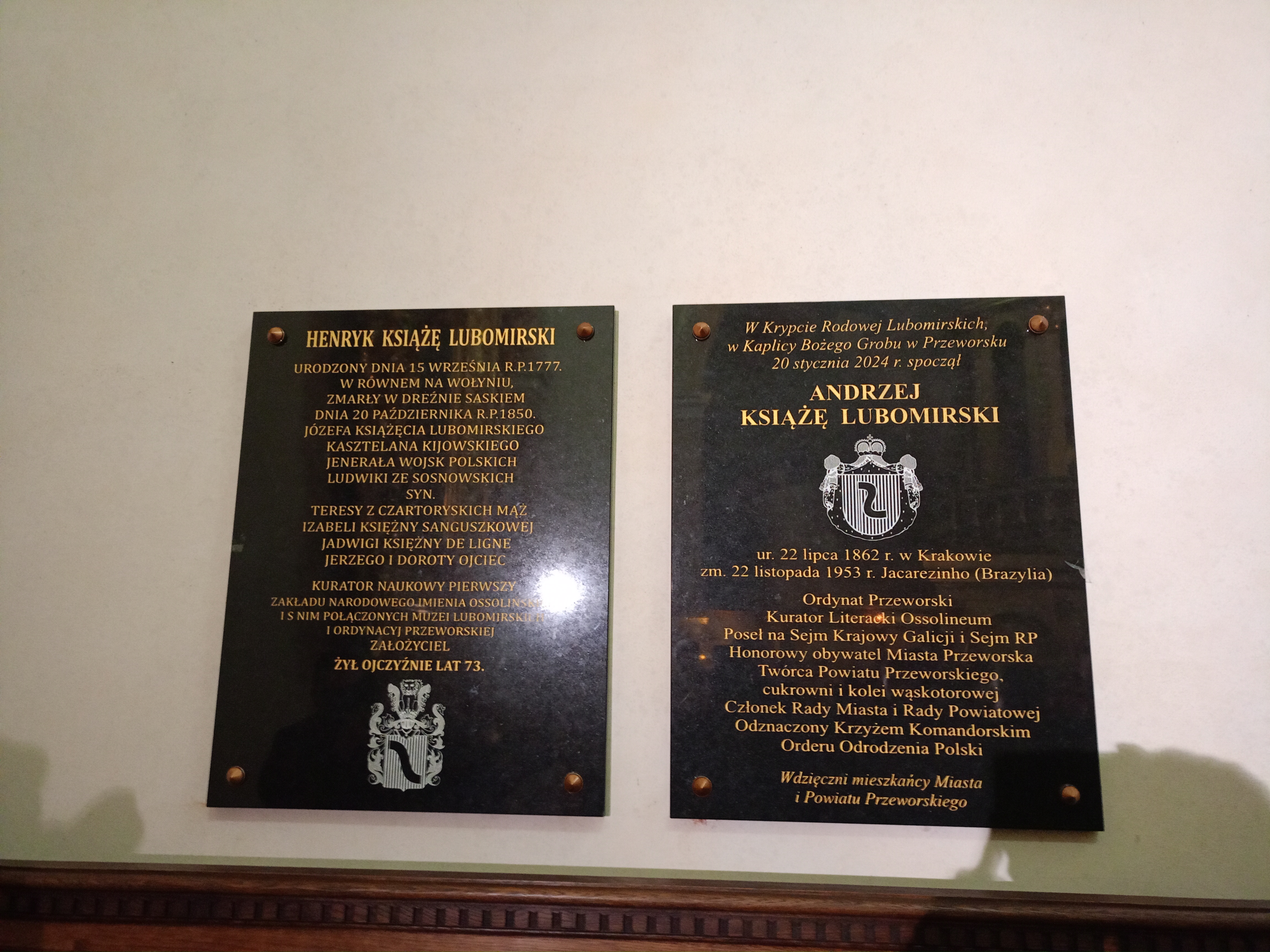 Następnie trumnę złożono do krypty pod Kaplicą Bożego Grobu. Na koniec członkini rodziny Lubomirskich, Pani Bożena Mytkowicz dokonała odsłonięcia tablic upamiętniających Andrzeja Lubomirskiego oraz jego dziadka Henryka Lubomirskiego.