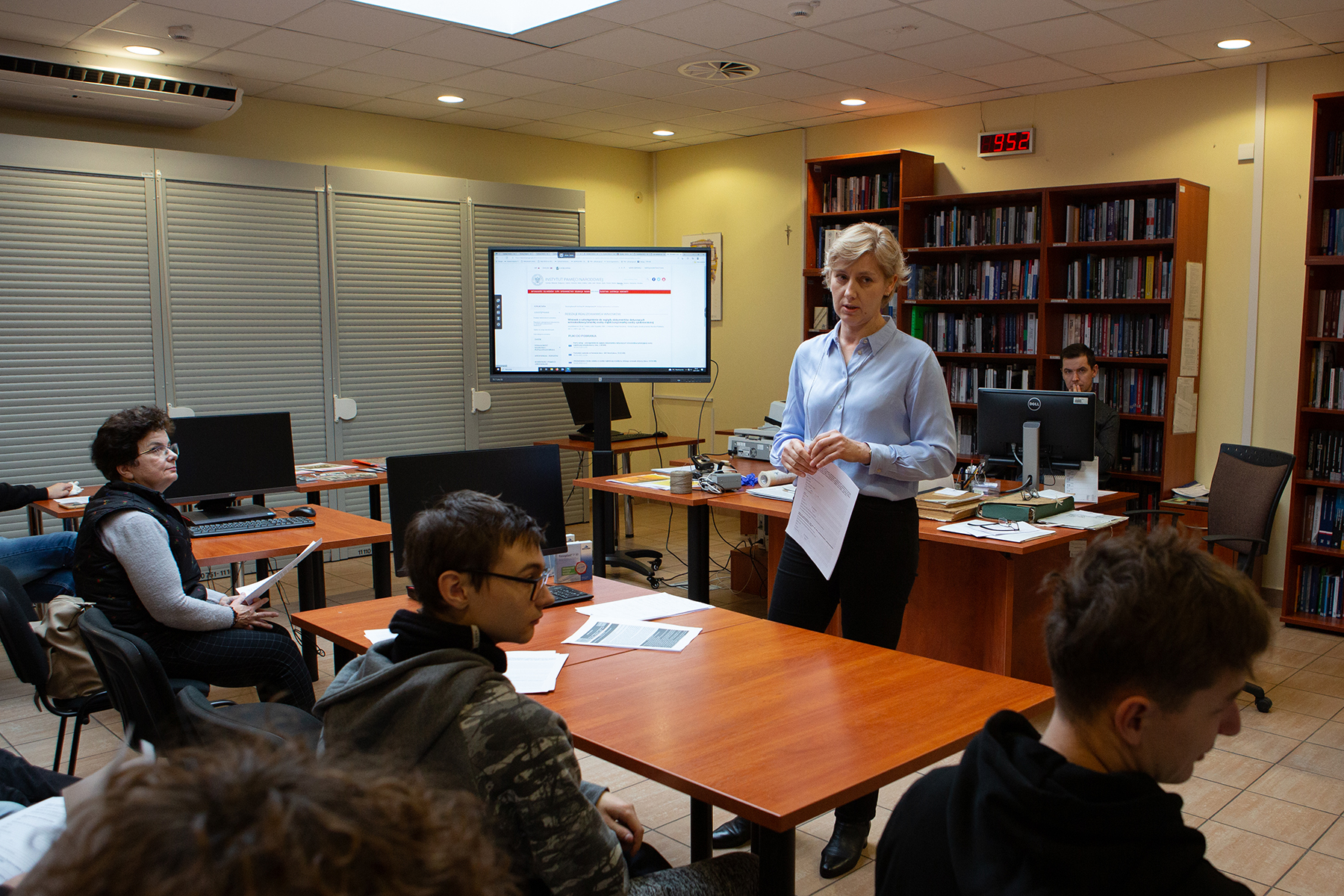 Zajęcia w Czytelni Akt Jawnych prowadzili archiwiści - pracownicy Oddziałowego Archiwum IPN w Rzeszowie. Podczas dzisiejszego spotkania nasi goście dowiedzieli się czym jest archiwum, komu służy, kto może korzystać ze zgromadzonego w IPN zasobu archiwalnego i w jaki sposób.