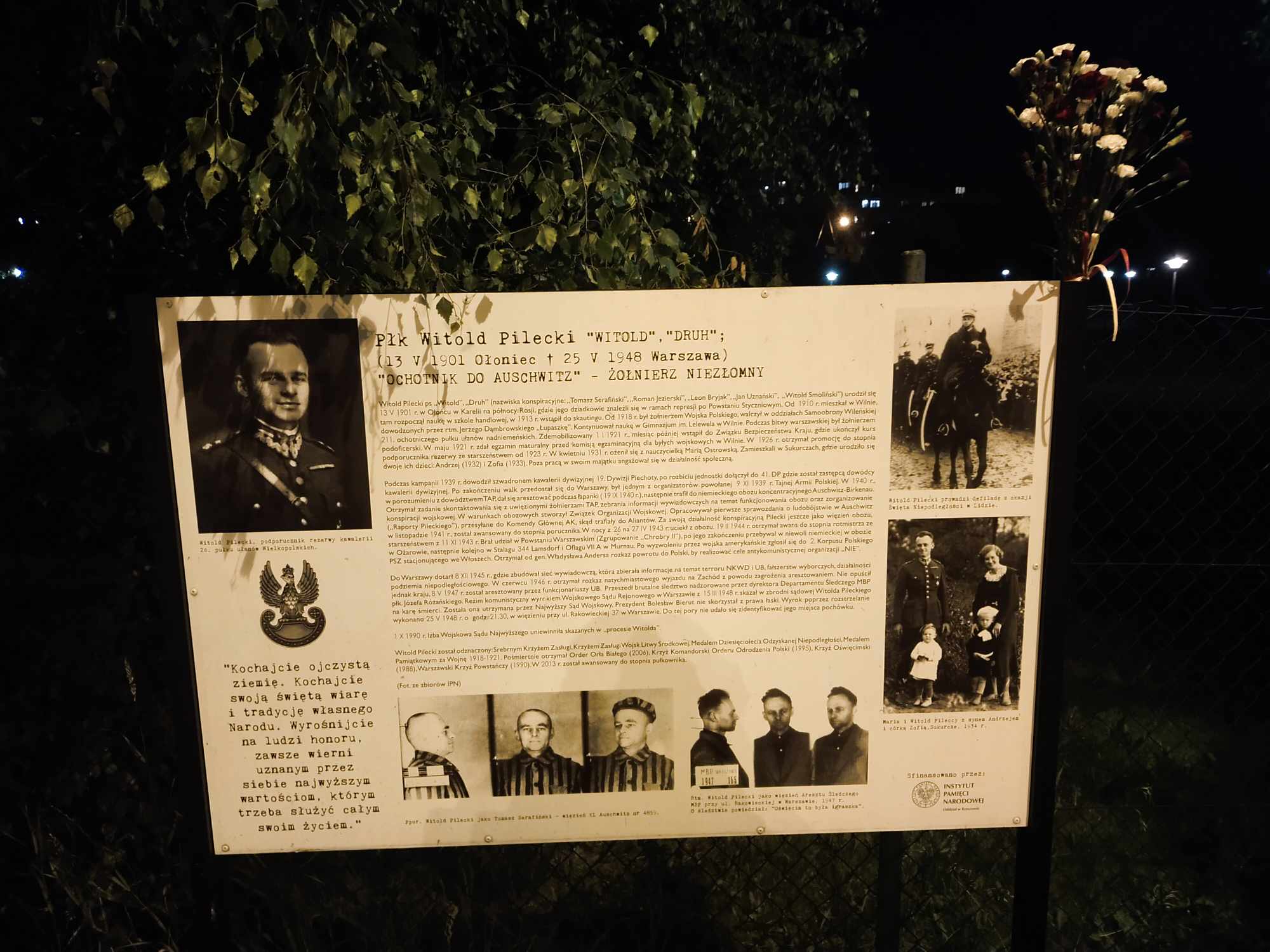 W godzinie śmierci Rotmistrza oddaliśmy mu hołd w miejscu jego kaźni – dawnym więzieniu mokotowskim, gdzie obecnie funkcjonuje Muzeum Żołnierzy Wyklętych i Więźniów Politycznych PRL. Głównym punktem obchodów były wieczorne uroczystości przy Ścianie Śmierci, w jednym z miejsc, w którym w latach stalinizmu komunistyczni oprawcy rozstrzeliwali swe ofiary. Rotmistrza uczcili m.in. jego córka Zofia Pilecka-Optułowicz i zastępca prezesa Instytutu Pamięci Narodowej dr hab. Krzysztof Szwagrzyk.