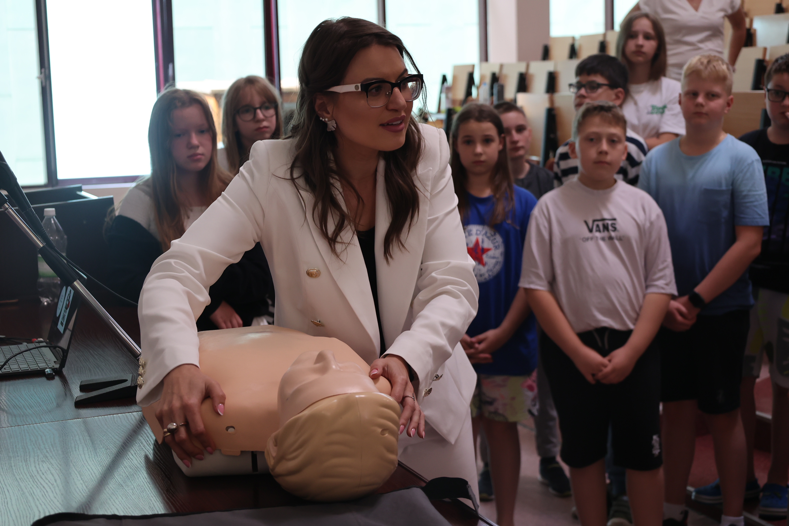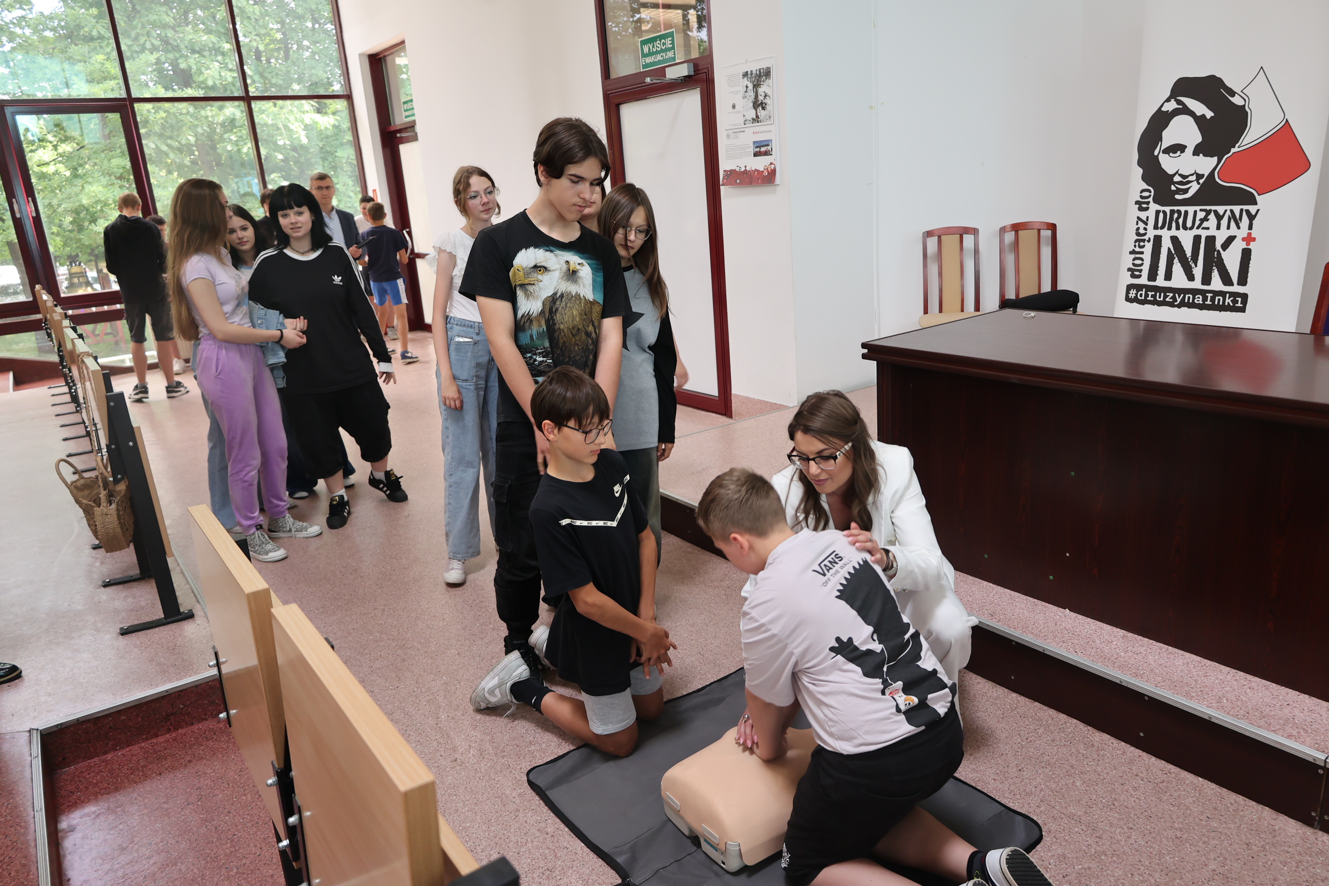 Druga część stanowi teoretyczne i praktyczne szkolenie z pierwszej pomocy przedmedycznej. Na zakończenie zajęć, każdy z uczniów próbuje swoich sił z fantomem, w celu poznawanie procedury resuscytacyjnej. Wszyscy uczestnicy otrzymują drobne upominki.