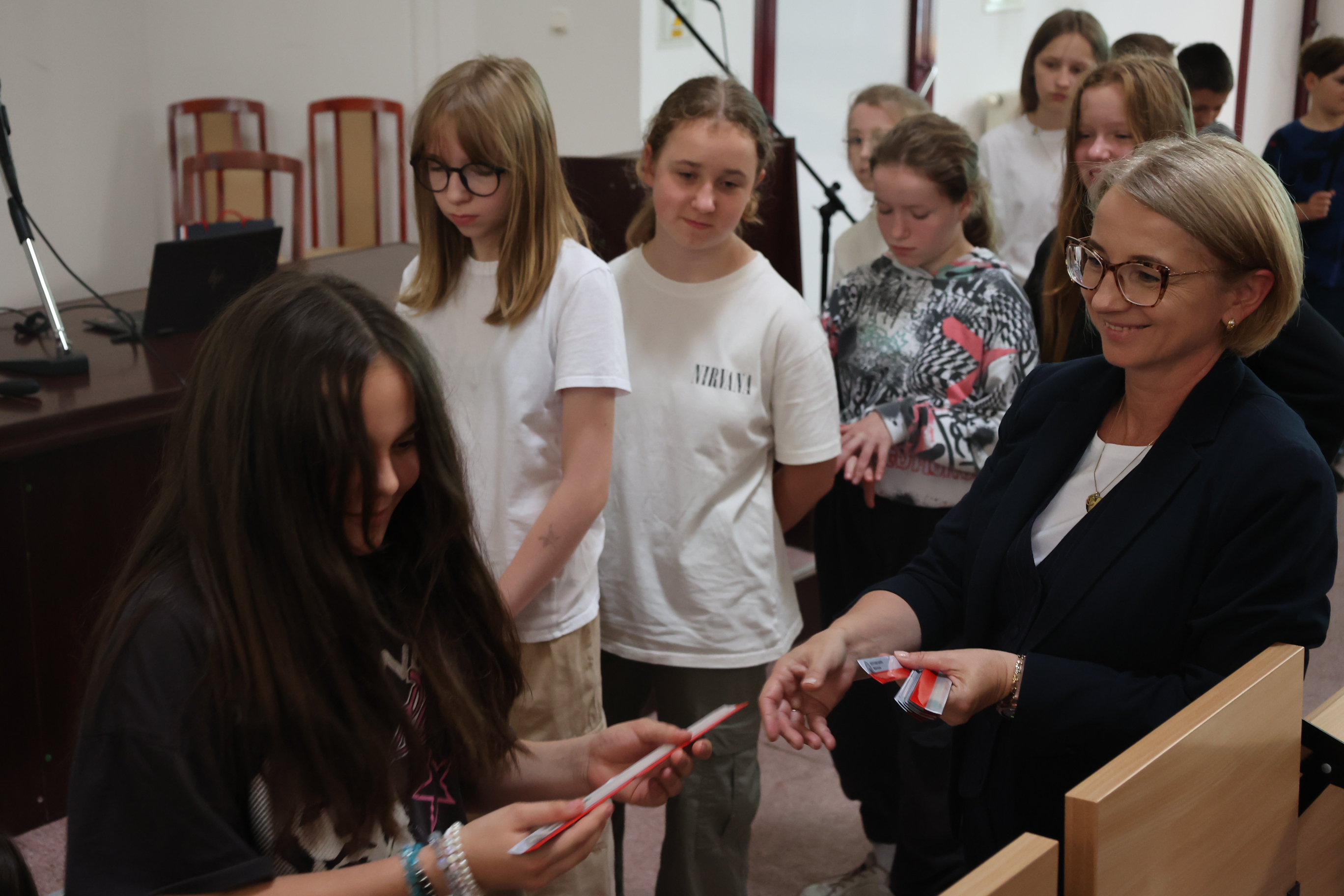 Zajęcia prowadzi Kinga Smoleń, która w sposób interesujący przekazuje uczestnikom warsztatów historię sanitariuszki „Inki” oraz losy jej i jej rodziny.
