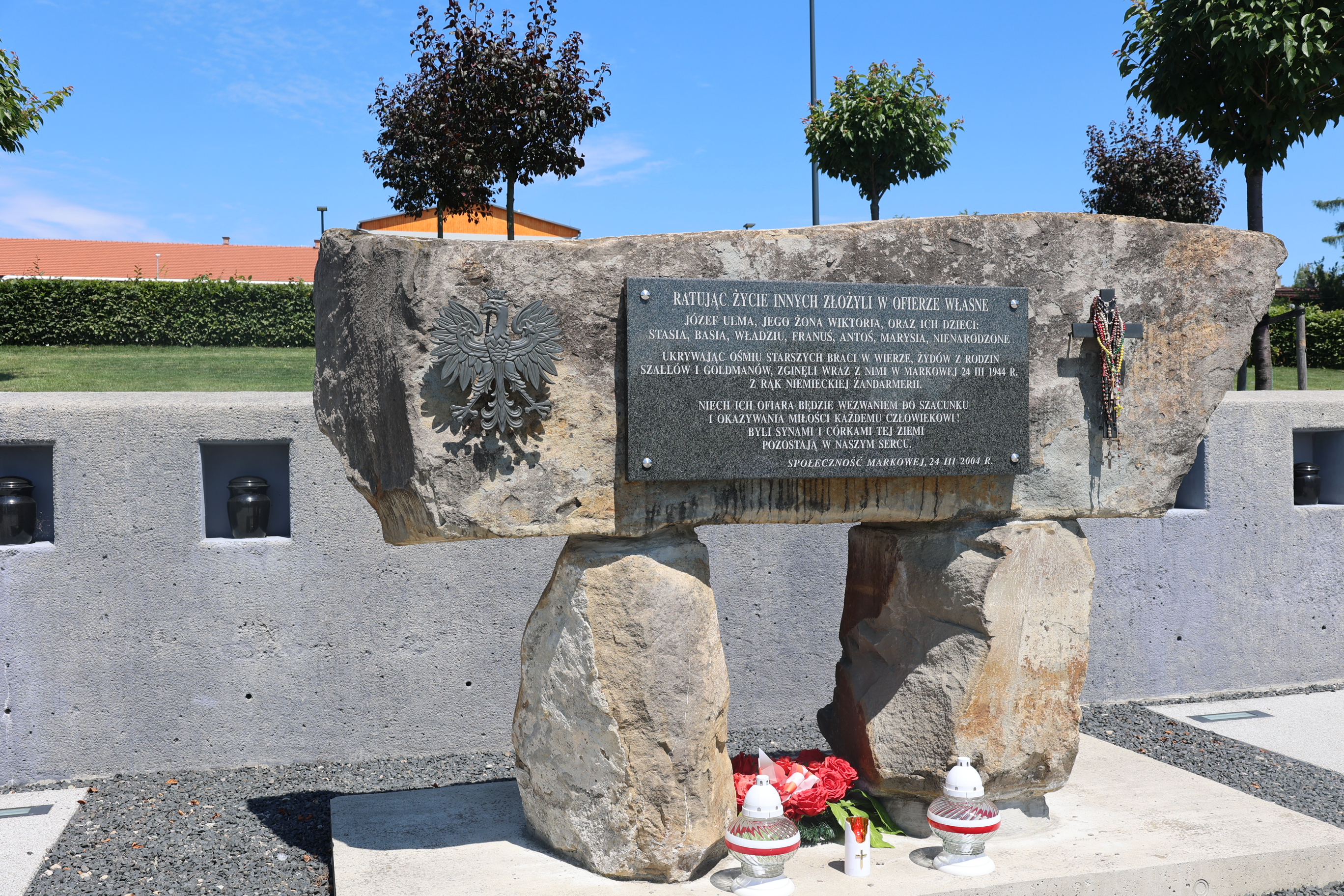 Na koniec wizyty w Markowej delegacja złożyła kwiaty i zapaliła znicze na grobie błogosławionej rodziny Ulmów.