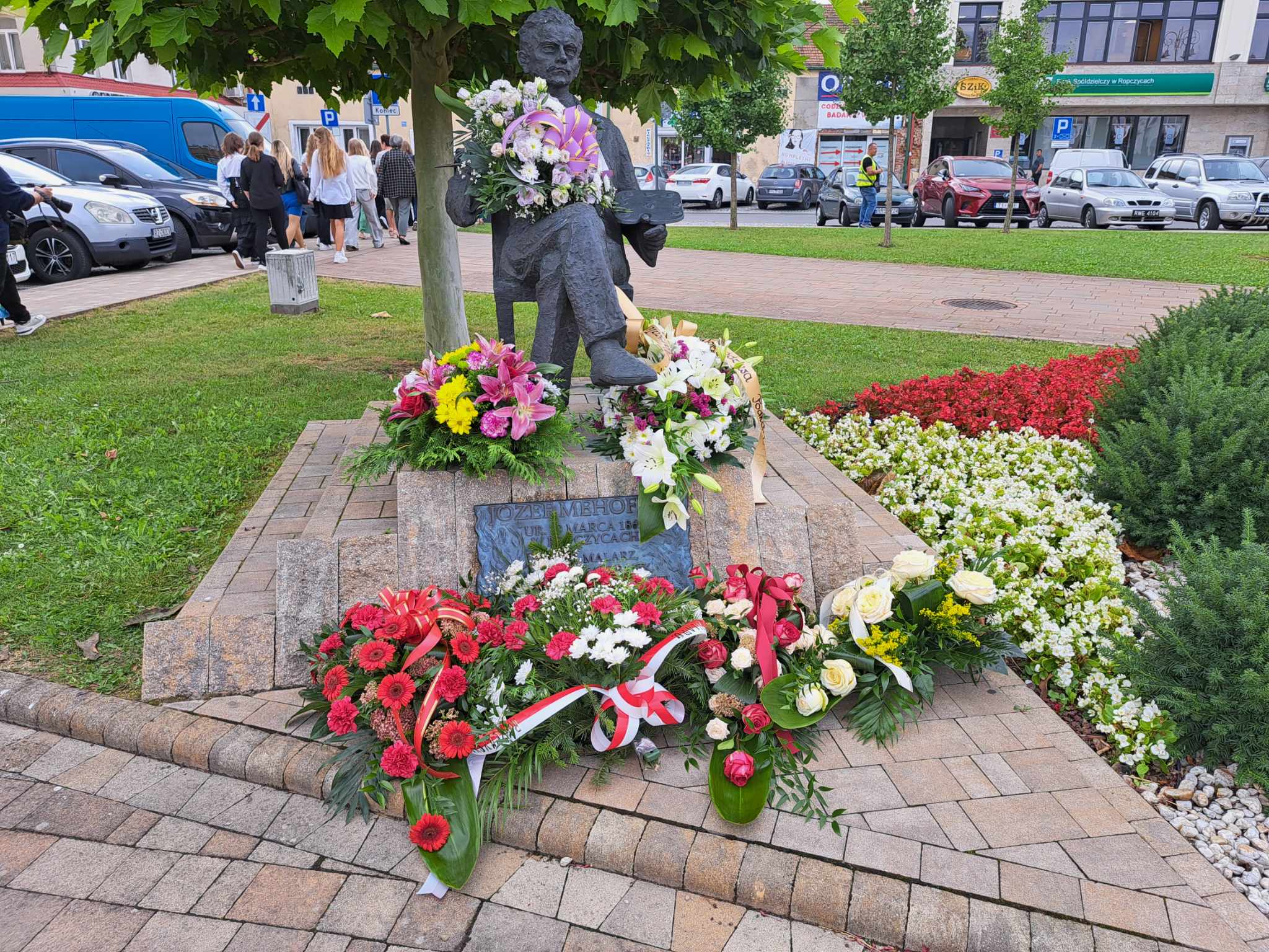 Po uroczystym odsłonięciu muralu miało miejsce złożenie kwiatów pod pomnikiem Józefa Mehoffera.
