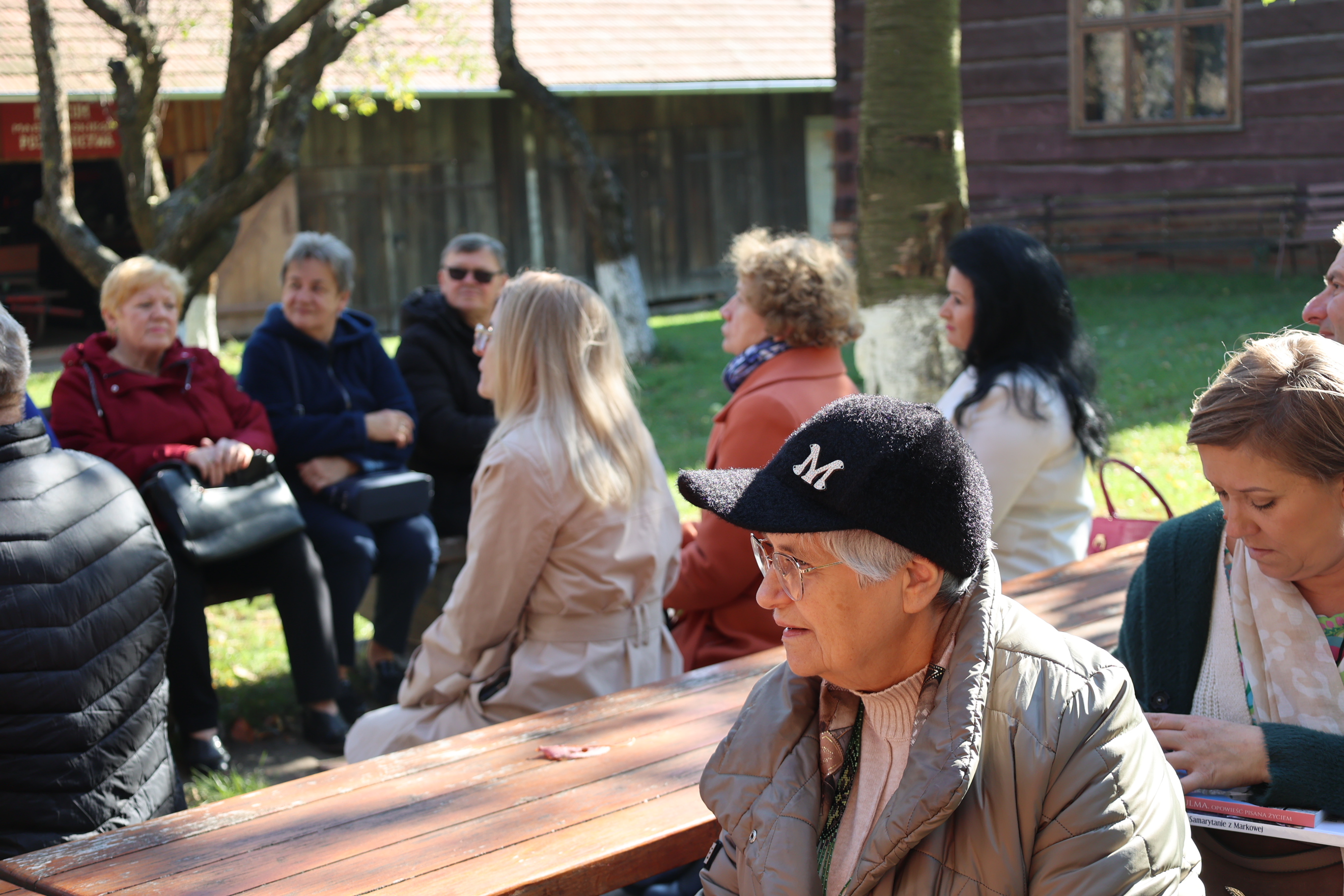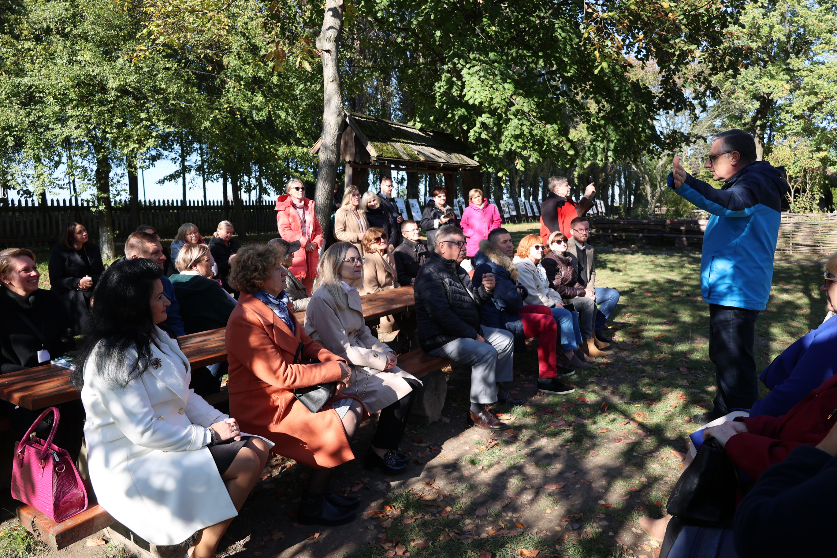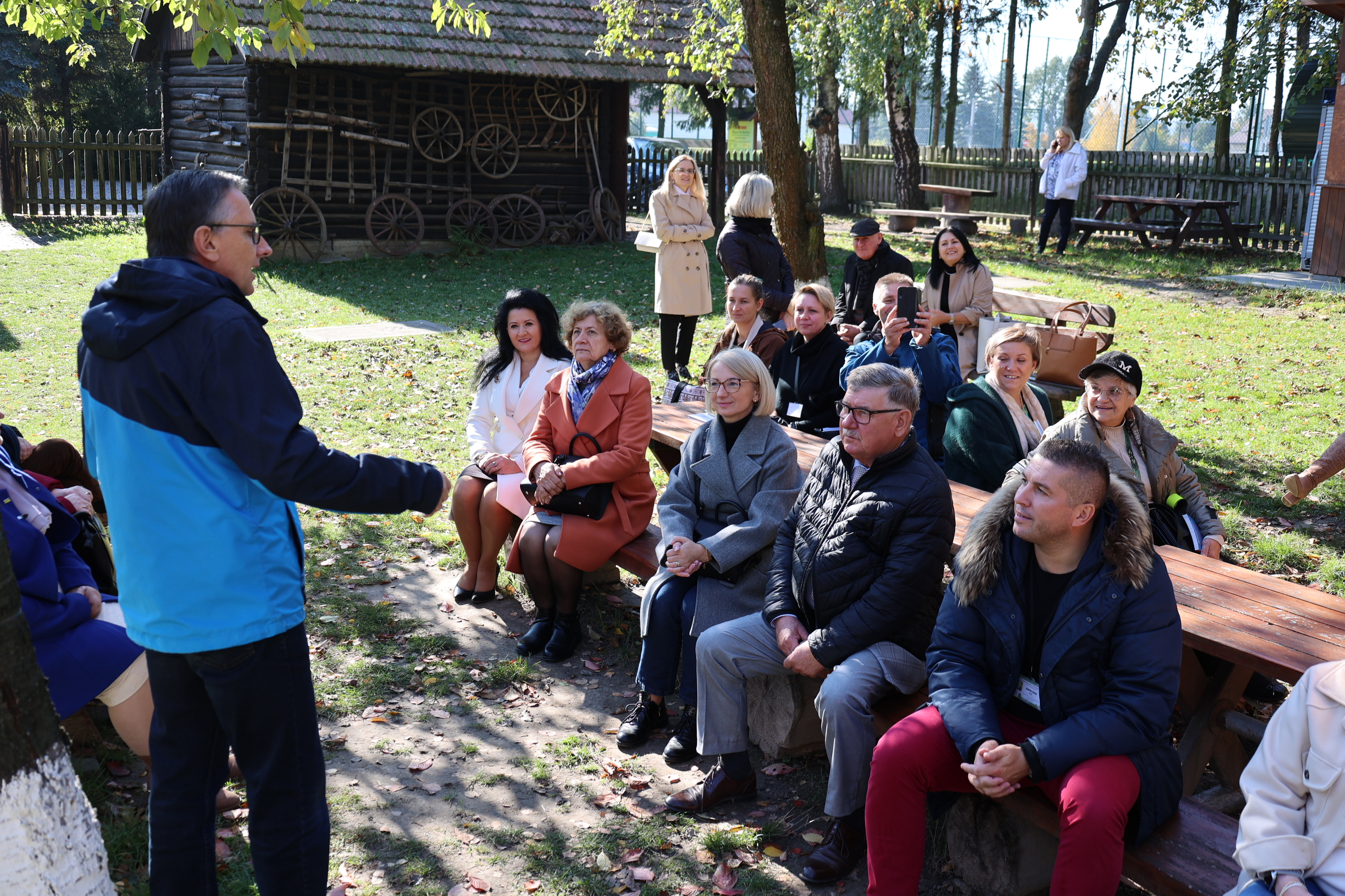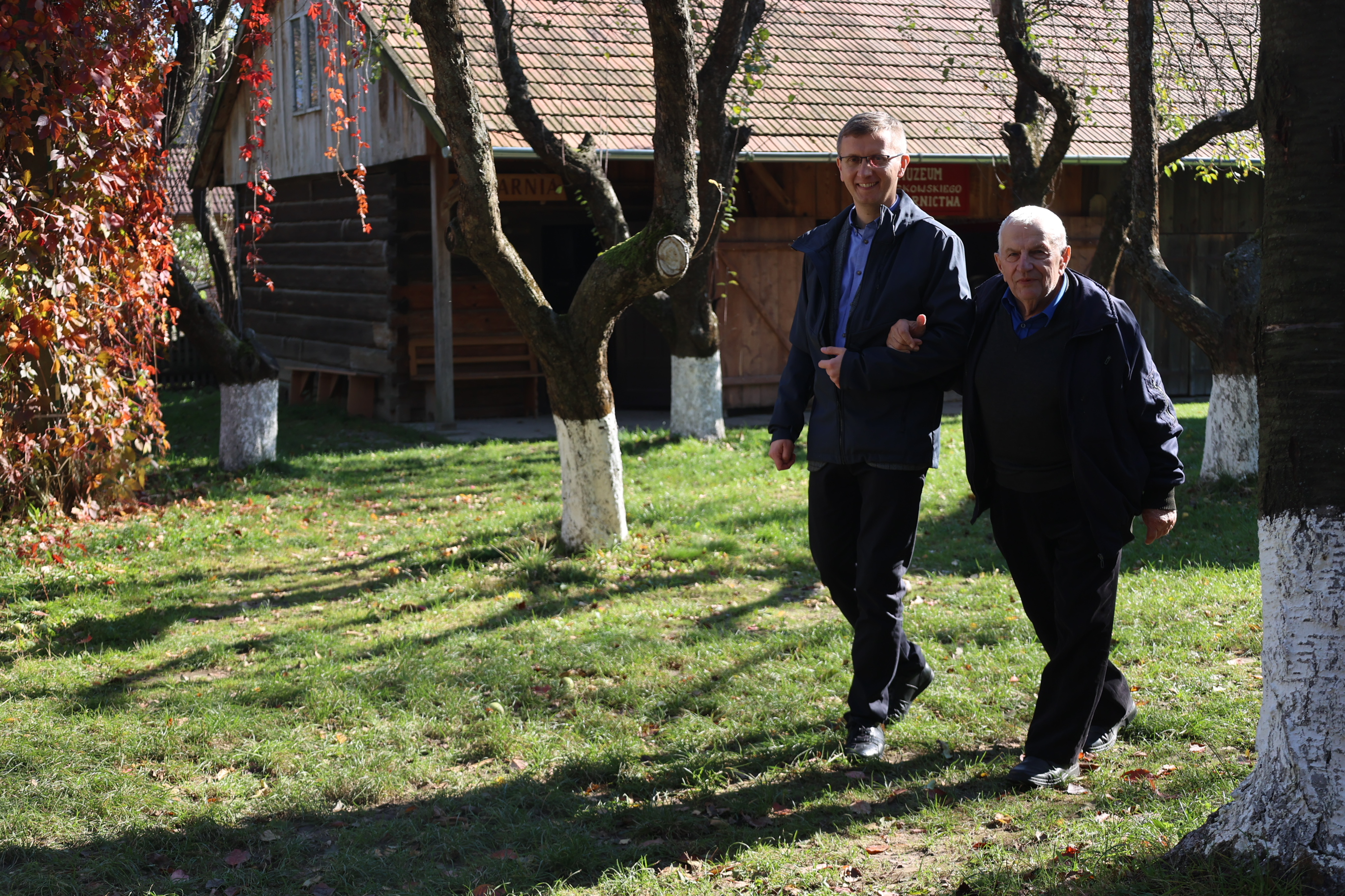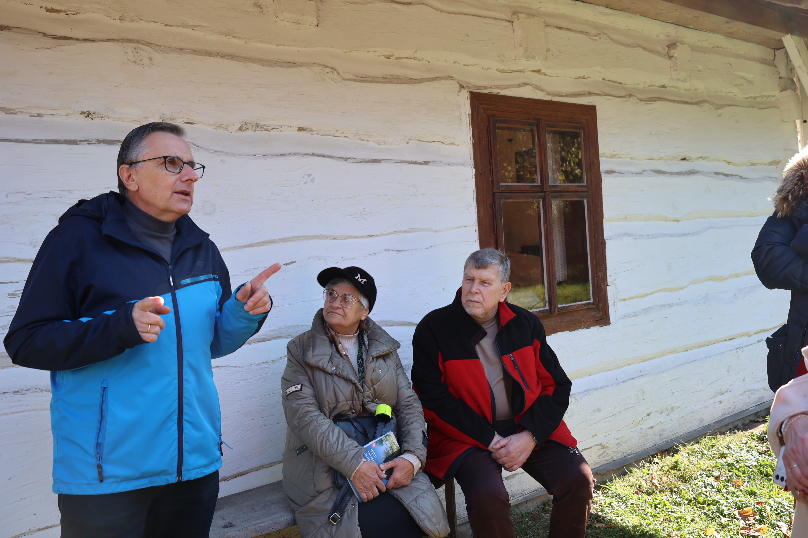 Kolejnym punktem programu było zwiedzanie skansenu, gdzie goście zobaczyli m.in. Chałupę Szylarów, w której na strychu w czasie II wojny światowej ukrywała się żydowska rodzina Weltzów. Po skansenie oprowadzał członek zarządu Towarzystwa Przyjaciół Markowej, Marek Kochmański, a powitała ich przewodnicząca Maria Ryznar-Fołta. Gościem honorowym spotkania w skansenie był Kazimierz Wyczarski, wieloletni prezes Towarzystwa Przyjaciół Markowej i pasjonat Wincentego Witosa.