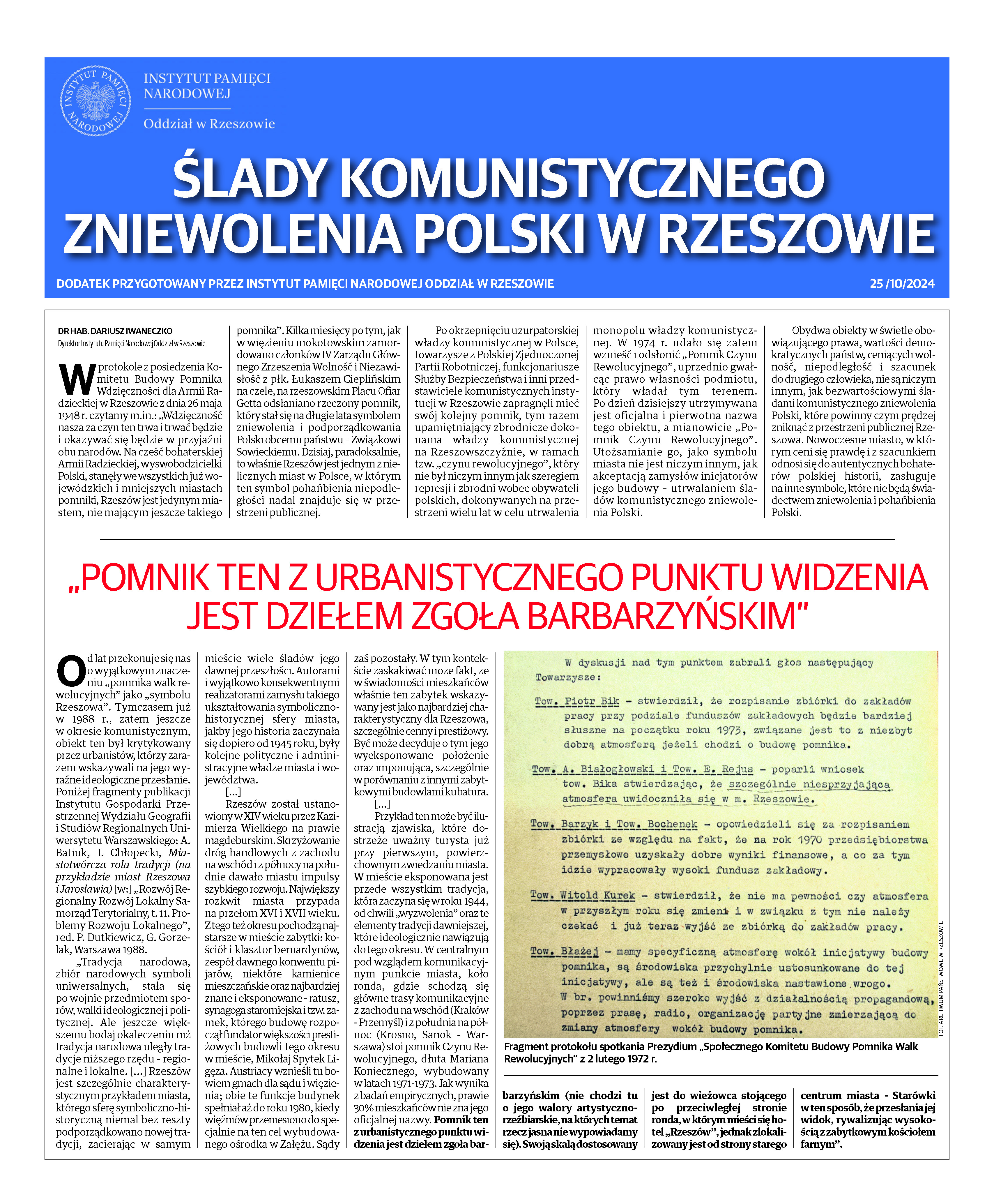 Dodatek prasowy, przygotowany przez Instytut Pamięci Narodowej Oddział w Rzeszowie ukazał się 25 października 2024 r. w Gazecie Codziennej „Nowiny”.