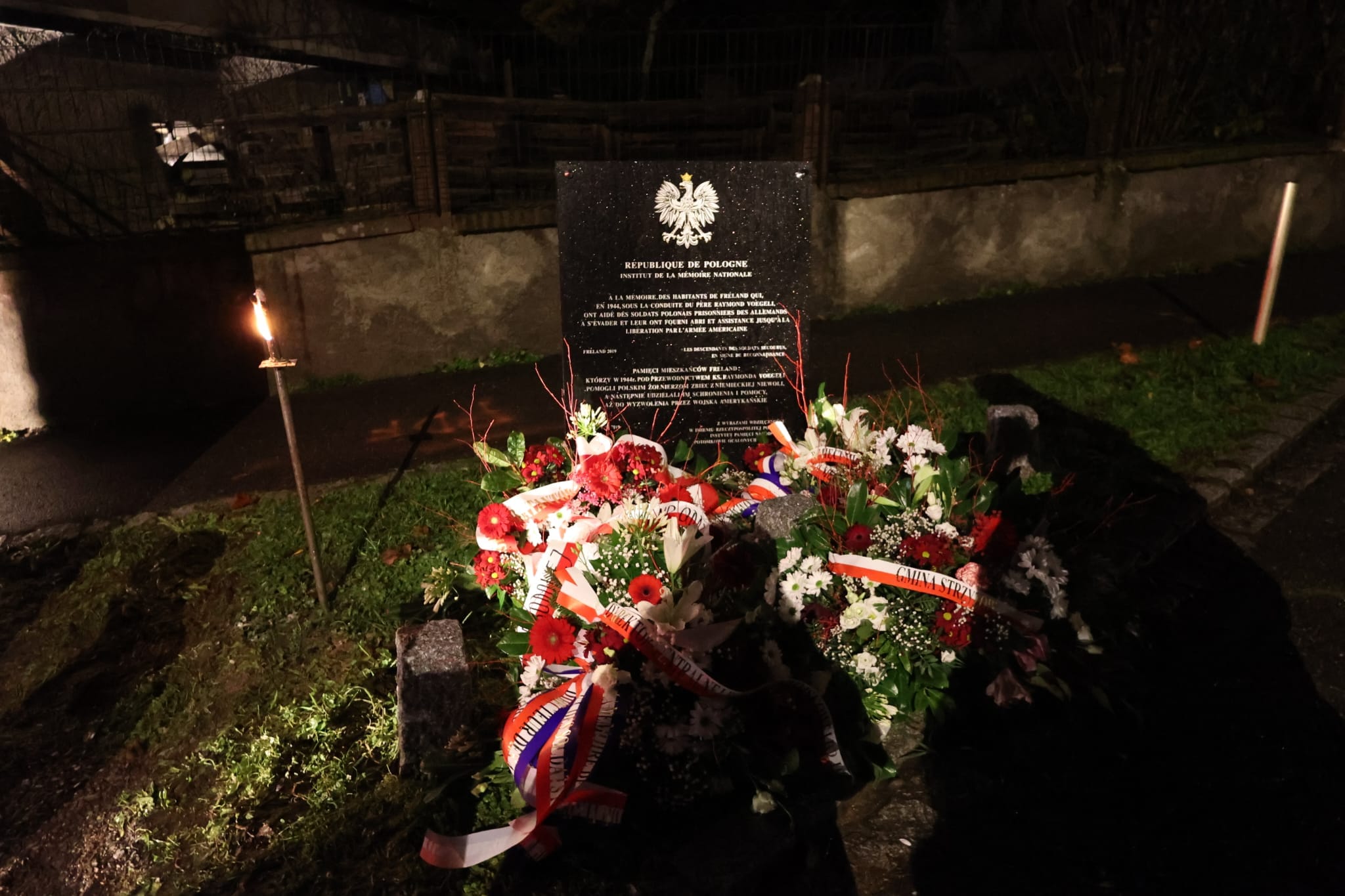 Następnie delegacje złożyły wiązanki kwiatów pod tablicą upamiętniającą mieszkańców Fréland niosących pomoc polskim jeńcom.