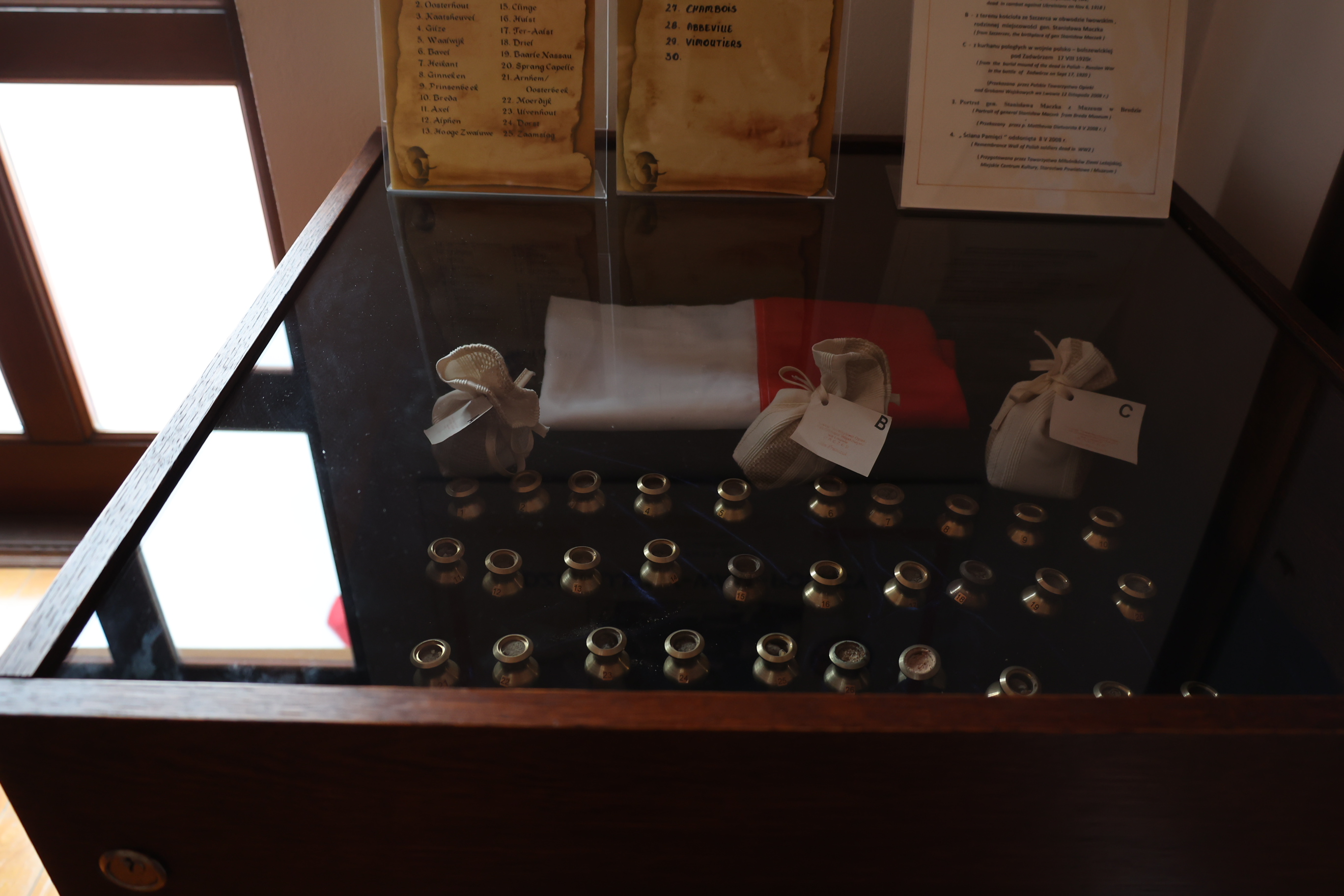 Eksponaty na co dzień można oglądać na wystawie w Muzeum Ziemi Leżajskiej wśród innych unikatowych kolekcji związanych z historią Polski i miasta m.in. związku gen. Władysława Sikorskiego z Leżajskiem, marszałka Józefa Piłsudskiego. Jest tam takze gablota z ziemią z pół bitewnych i cmentarzy żołnierzy polskich we Francji, Belgii, Holandii walczących u boku gen. Stanisława Maczka z czasów II wojny światowej, ale także formy kaflarskie czy wystawa ponad 200 drewnianych zabawek, które rozwijały się powiecie leżajskim od XVIII wieku.