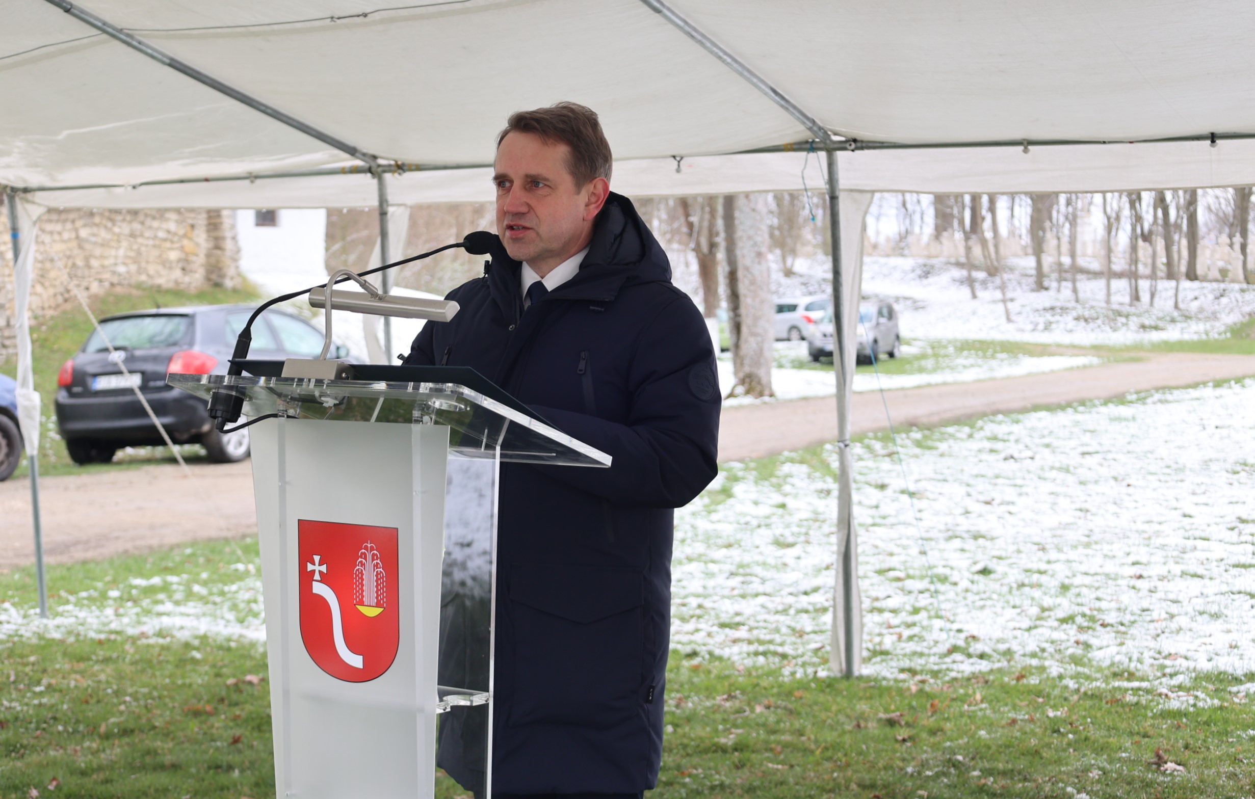 podziękował społeczności za inicjatywę, abyśmy jako IPN mogli w Radrużu wypełnić swoją ustawową misję i wykonać godny nagrobek dla ofiar nacjonalistycznych Ukraińców z kamienia bruśnieńskiego, bardziej przyjaznego człowiekowi. Podziękował też mieszkańcom za opiekę nad tym cmentarzem, zostawiamy Wam ten nagrobek abyście opiekowali się swoimi rodakami i swoim dziedzictwem narodowym, bo niestety te trudne chwile lat 1944-1947 to także nasze dziedzictwo narodowe, które nas wszystkich kształtuje i sprawia, że jesteśmy Polakami.