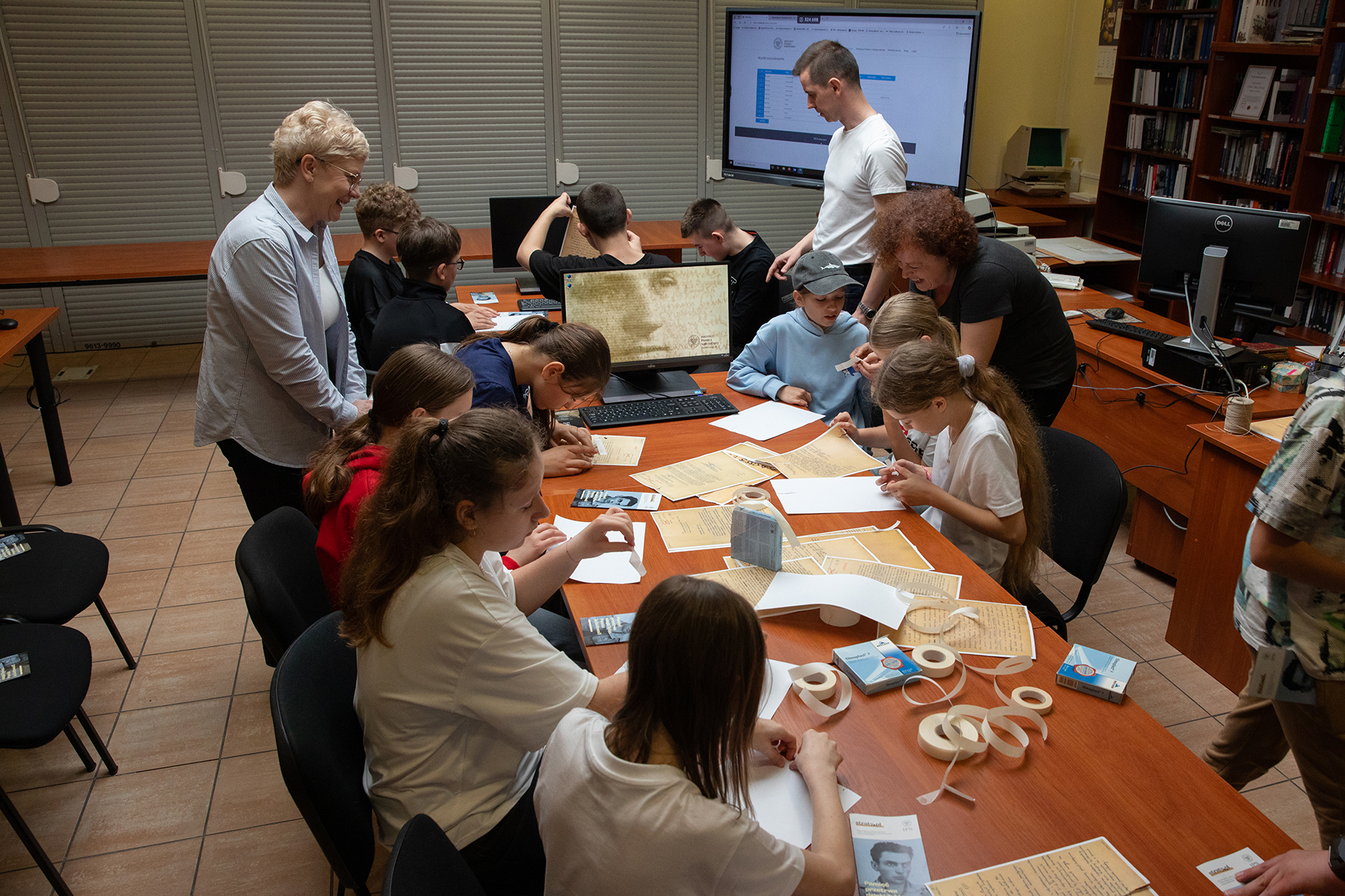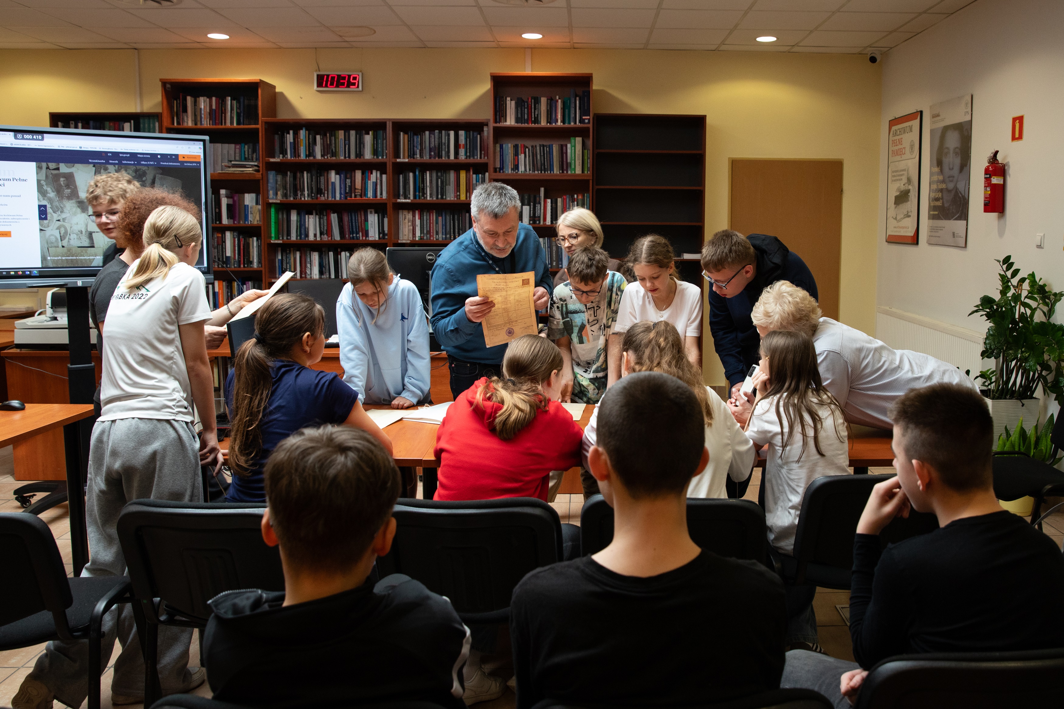 W Czytelni Akt Jawnych zostały zaprezentowane im oryginalne dokumenty pochodzące z rzeszowskiego zasobu archiwalnego, które dotyczyły Ropczyc, Ostrowa, a także okolicznych miejscowości. Goście dowiedzieli się na czym polega praca archiwisty w Oddziałowym Archiwum IPN. Poznali sposoby konserwacji materiałów archiwalnych i podstawowe narzędzia pracy archiwistów. Uczniowie z dużym zapałem wzięli udział w części praktycznej zajęć, a w ogólnodostępnej bazie „Straty.pl” chętnie wyszukiwali swoich krewnych – ofiary okupacji niemieckiej.