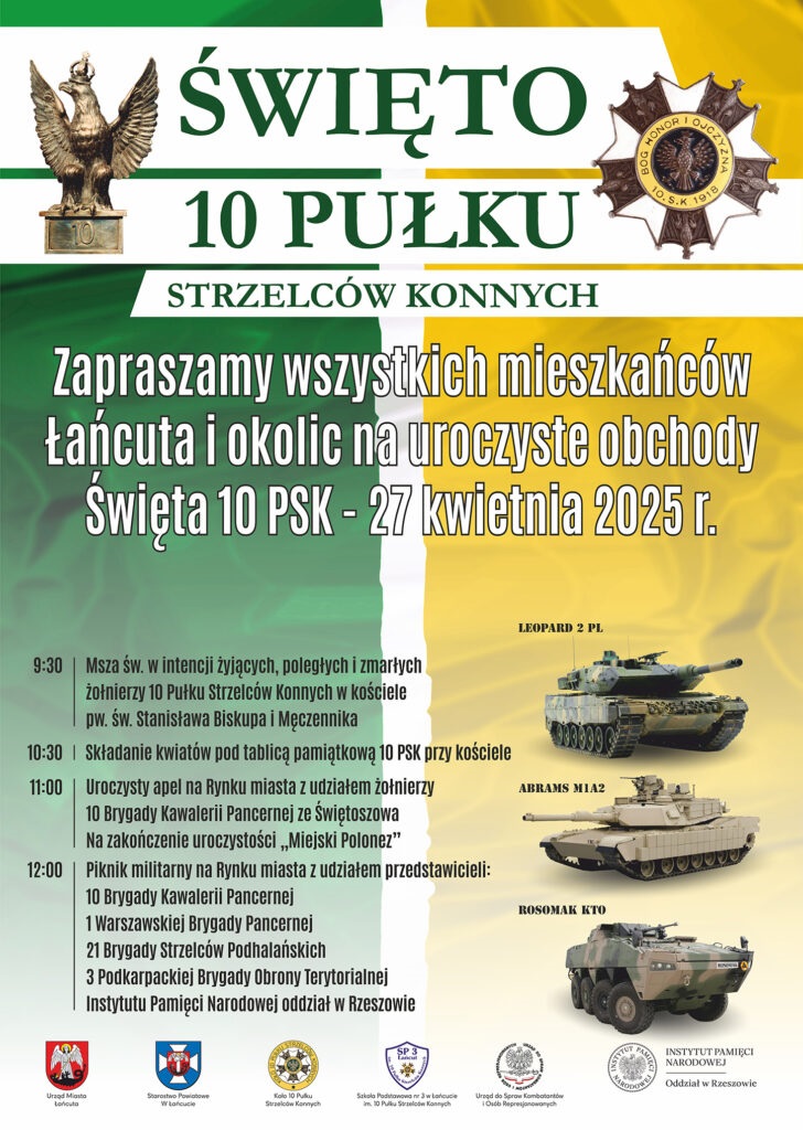 W niedzielę, 27 kwietnia 2025 roku, w Łańcucie odbędą się uroczyste obchody Święta 10 Pułku Strzelców Konnych.