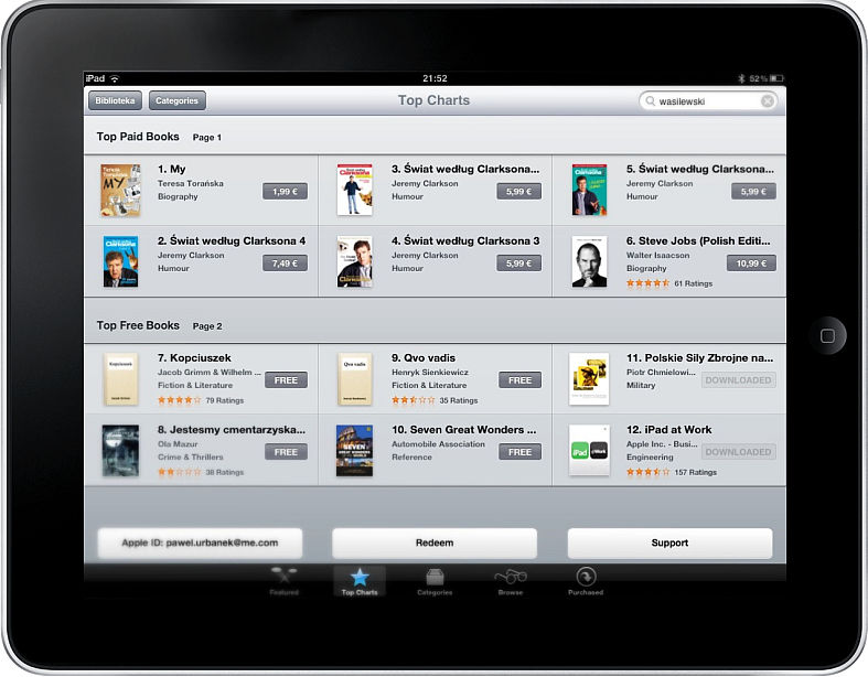 - 7 miejsce na dzień 16.04.2012 (album wszedł do pierwszej dziesiątki najpopularniejszych darmowych książek w księgarni iBookstore. Księgarnia funkcjonuje w 32 krajach, a album poza Polską był pobierany również we Włoszech i Wielkiej Brytanii)