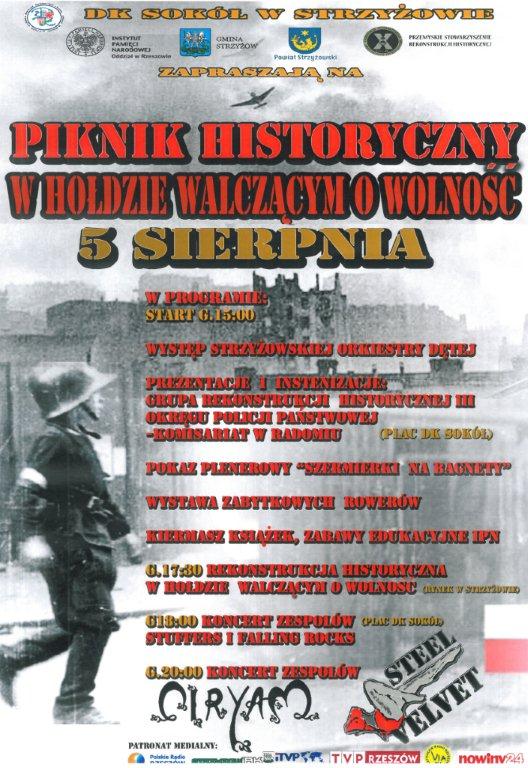 Instytut Pamięci Narodowej Oddział w Rzeszowie, Dom Kultury „Sokół” w Strzyżowie oraz Przemyskie Stowarzyszenie Rekonstrukcji Historycznej „X D.O.K.” zapraszają na Piknik Historyczny „W hołdzie walczącym o wolność”, który odbędzie się 5 sierpnia 2012 r. w Strzyżowie (plac Domu Kultury „Sokół”, ul. Mostowa 2).
