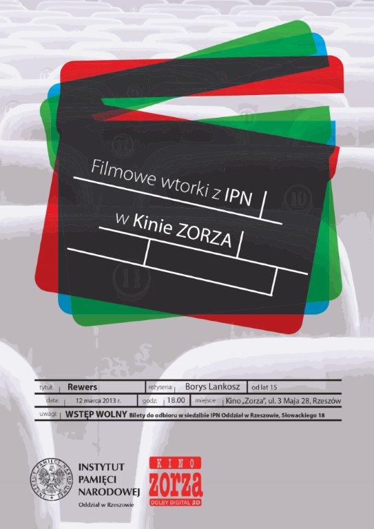 Instytut Pamięci Narodowej Oddział w Rzeszowie, w ramach w cyklu bezpłatnych pokazów filmowych, organizowanych w każdy drugi wtorek miesiąca w rzeszowskim kinie „Zorza”, zaprasza na pokaz filmu „Rewers” w reżyserii Borysa Lankosza. Film poprzedzony zostanie prelekcją historyka IPN.
