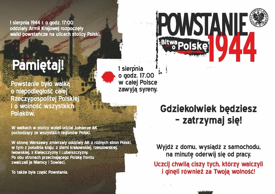 W ramach obchodów w kilkudziesięciu autobusach MPK oraz w kilkudziesięciu punktach na terenie miasta Rzeszowa zostaną rozwieszone plakaty informujące o tej ważnej dla historii Polski rocznicy. Plakaty będą eksponowane przez okres tygodnia - od 26 lipca br. Ponadto na terenie całego województwa podkarpackiego rozpowszechnione zostaną naklejki przypominające o rocznicy wybuchu Powstania.