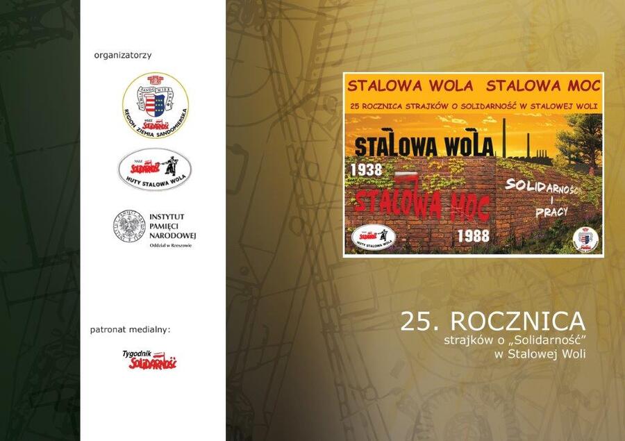 NSZZ „Solidarność” Region Ziemia Sandomierska, NSZZ „Solidarność” Huty Stalowa Wola oraz Instytut Pamięci Narodowej Oddział w Rzeszowie zapraszają na obchody 25. rocznicy strajków o „Solidarność w Stalowej Woli, które odbędą się 1 września 2013 r. w Stalowej Woli.