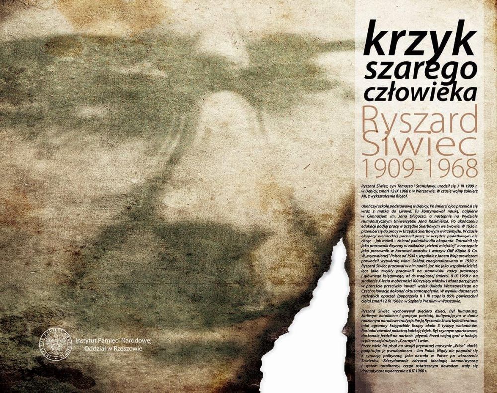 Instytut Pamięci Narodowej Oddział w Rzeszowie zaprasza do zapoznania się z wystawą „Krzyk szarego człowieka. Ryszard Siwiec 1909–1968”, eksponowaną na ogrodzeniu siedziby rzeszowskiego oddziału IPN (ul. Słowackiego 18) w terminie od 6 do 30 września 2013 r.  Celem ekspozycji jest przypomnienie osoby Ryszarda Siwca. Wystawa powstała w związku z obchodami 40. rocznicy dokonania przez niego aktu samospalenia na Stadionie X-lecia w Warszawie w proteście przeciwko inwazji wojsk Układu Warszawskiego na Czechosłowację.