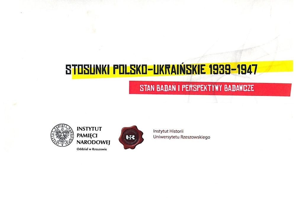 Instytut Pamięci Narodowej Oddział w Rzeszowie oraz Instytut Historii Uniwersytetu Rzeszowskiego zapraszają do wzięcia udziału w konferencji naukowej „Stosunki polsko-ukraińskie 1939–1947. Stan badań i perspektywy badawcze", która odbędzie się w dniach 19–20 września 2013 r. na Uniwersytecie Rzeszowskim (ul. Rejtana 16 c).