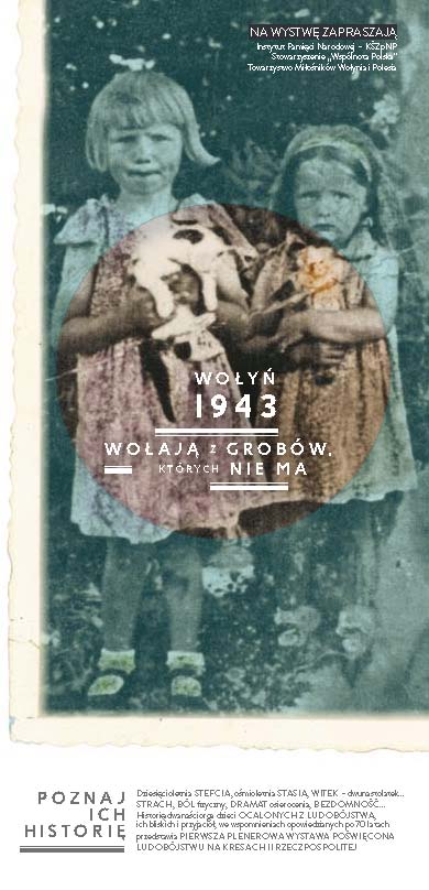 Wystawa poświęcona ludobójstwu na Kresach II Rzeczpospolitej „Wołyń 1943. Wołają z grobów, których nie ma" przedstawia historię dwanaściorga dzieci ocalonych z ludobójstwa, ich bliskich i przyjaciół we wspomnieniach opowiedzianych po 70 latach. Wstrząsające relacje świadków przywołują dramat dwóch okupacji, narastającą grozę wojenną, a w końcu ludobójcze działania ukraińskich nacjonalistów, podczas których mordowano całe rodziny, wsie, kolonie... Chór z Ostrówek, szkoła powszechna w Zagajach to tylko wybrane przykłady skupisk ludzkich unicestwionych niemal w całości, które przedstawiono na wielkoformatowych fotografiach. Niejednokrotnie to jedyne ocalone pamiątki rodzinne.
