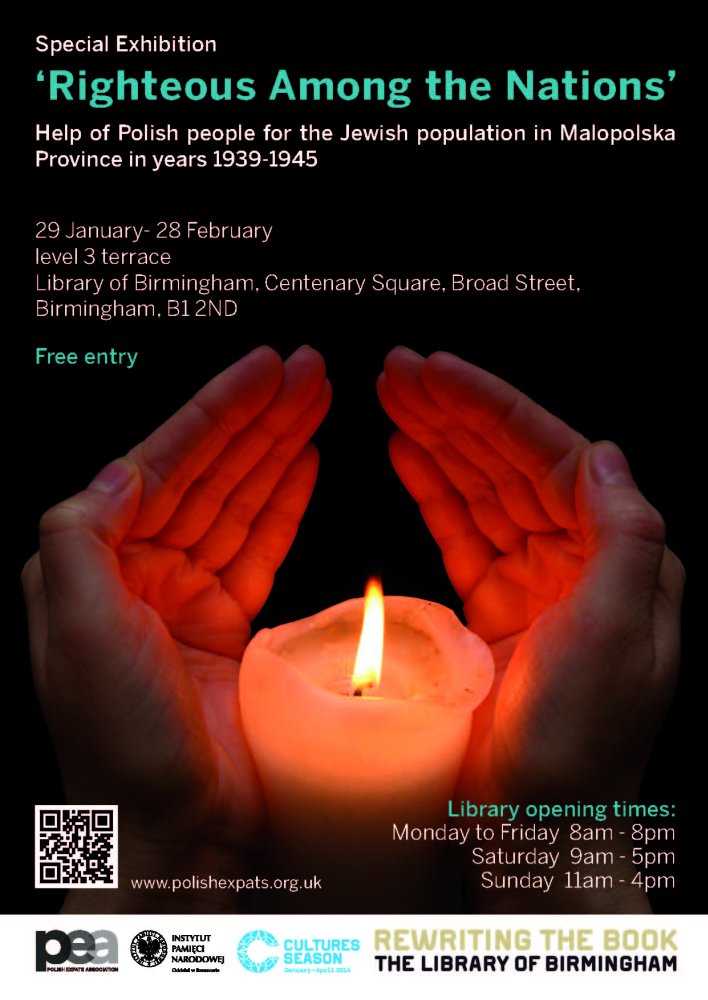 28 stycznia 2014 r. w Library of Birmingham Centenary Square (Broad Street Birmingham) odbył się wernisaż wystawy „Sprawiedliwi wśród Narodów Świata. Pomoc Polaków dla ludności żydowskiej w Małopolsce 1939–1945", przygotowanej przez Instytut Pamięci Narodowej Oddział w Rzeszowie. Był to już trzeci wernisaż tej wystawy w Wielkiej Brytanii. Wystawa prezentowana była wcześniej w Londynie oraz Liverpoolu.