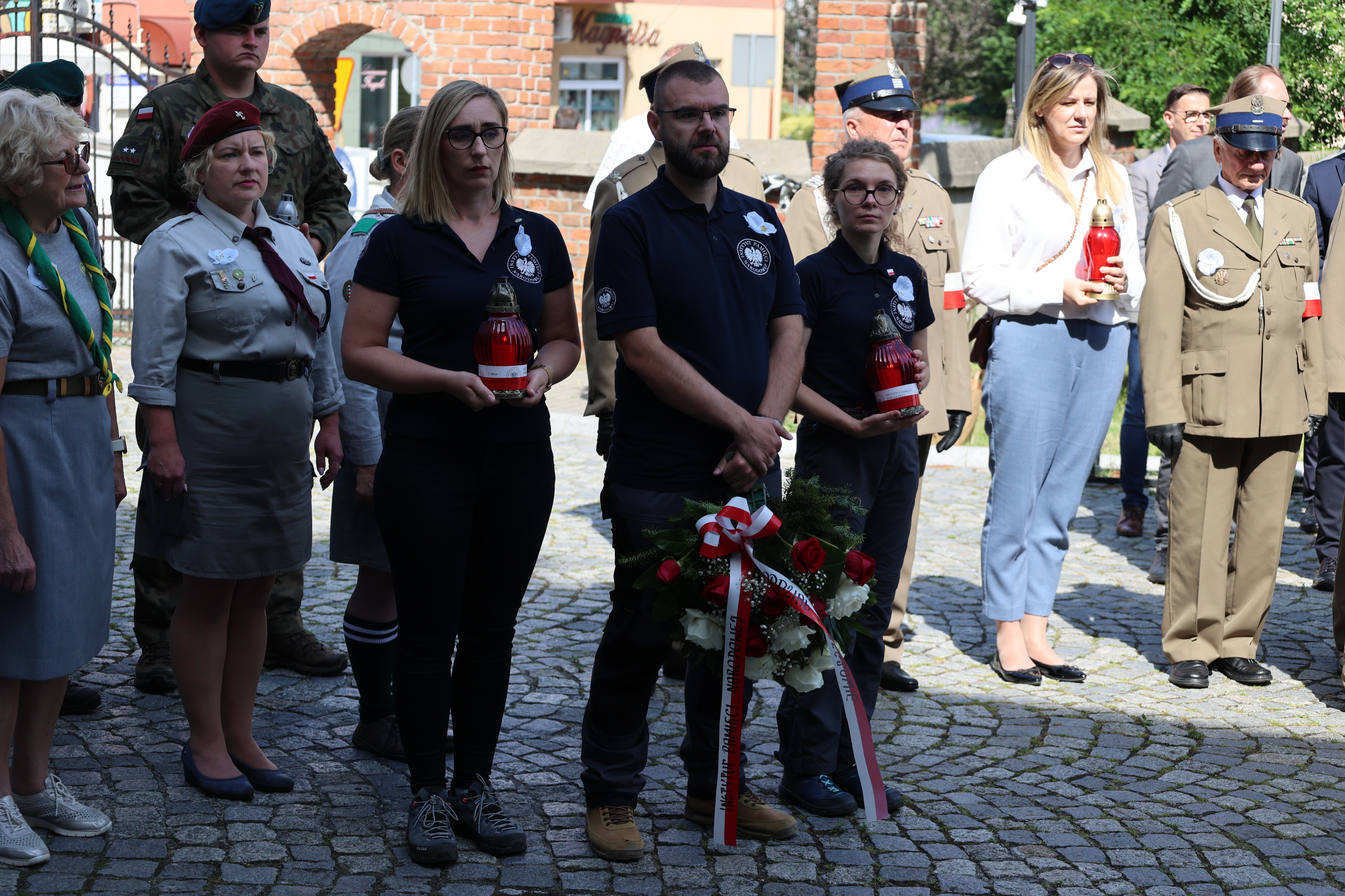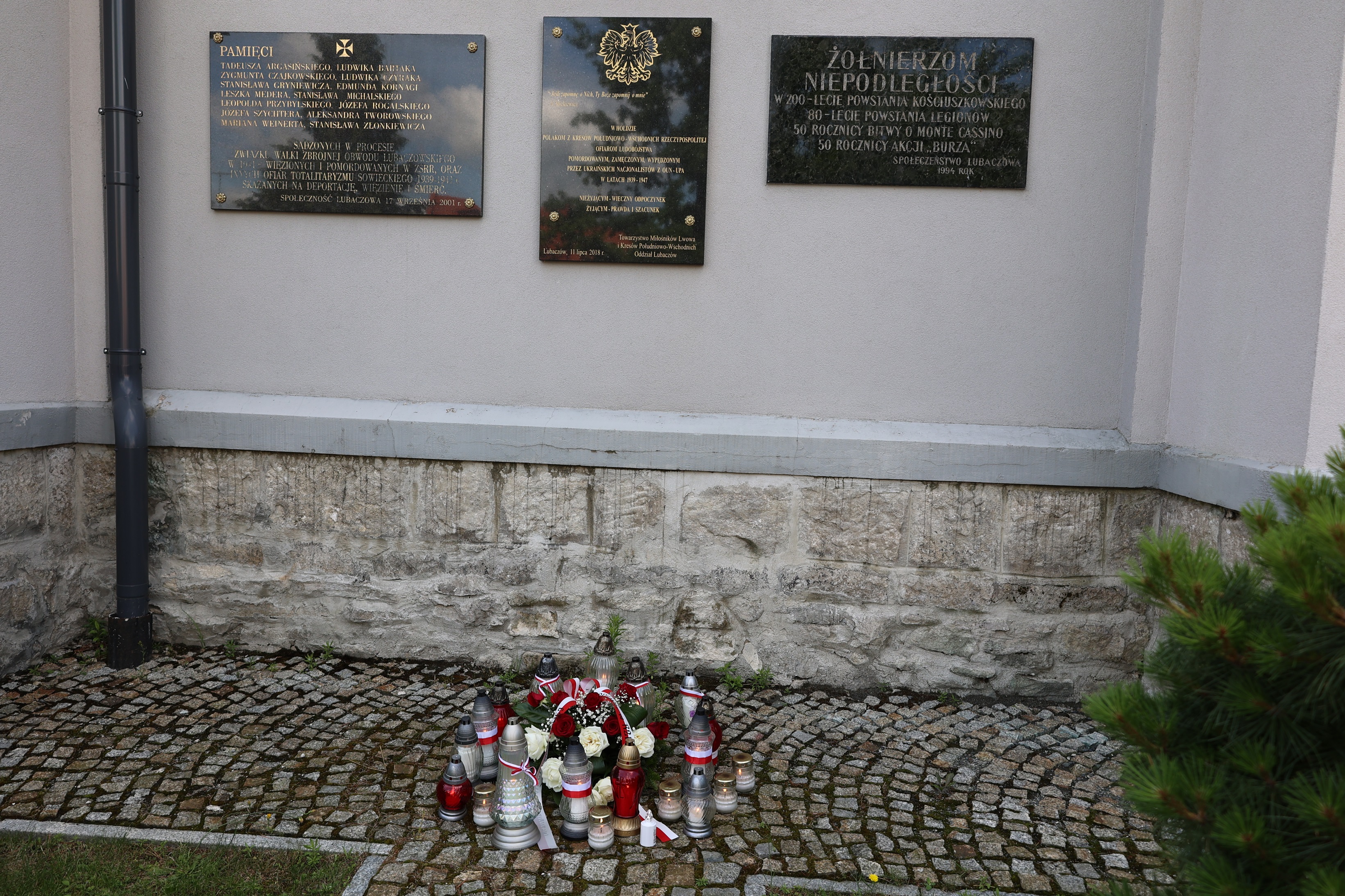 Po uroczystym apelu na Rynku miejskim w Lubaczowie, zebrani uczestnicy przeszli do konkatedry bł. Jana Strzemię, gdzie złożono kwiaty pod tablicą, która upamiętnia ofiary OUN-UPA. Następnie, pracownicy Instytutu Pamięci Narodowej oddział
