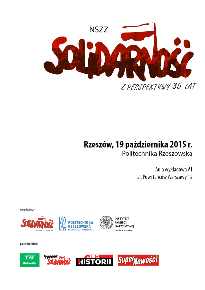 19 października 2015 r. w Rzeszowie, na Politechnice Rzeszowskiej (aula wykładowa V1, al. Powstańców Warszawy 12) odbyła się konferencja naukowa „NSZZ »Solidarność« z perspektywy 35 lat”.