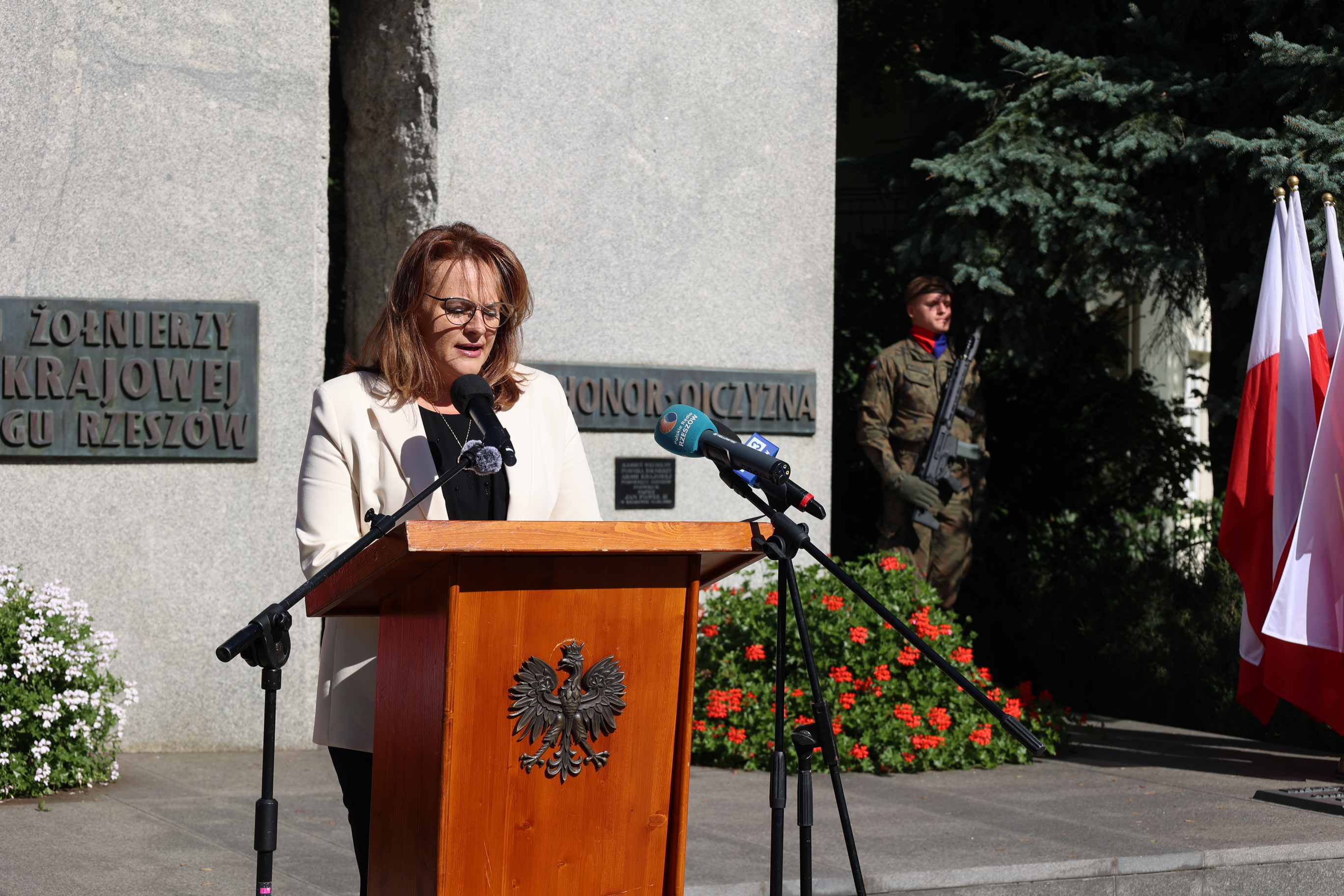 Następnie były okolicznościowe przemówienia przedstawicieli władz parlamentarnych i samorządowych. Głos zabrała dr Ewa Leniart, poseł na Sejm RP, Teresy Kubas-Hul, wojewoda podkarpacki, Małgorzata Jarosińska-Jedynak, członek Zarządu Województwa Podkarpackiego, Marcin Deręgowski, wiceprezydent Rzeszowa oraz dr hab. Dariusz Iwaneczko, dyrektor Instytutu Pamięci Narodowej Oddział w Rzeszowie, który w swoim wystąpieniu powiedział: