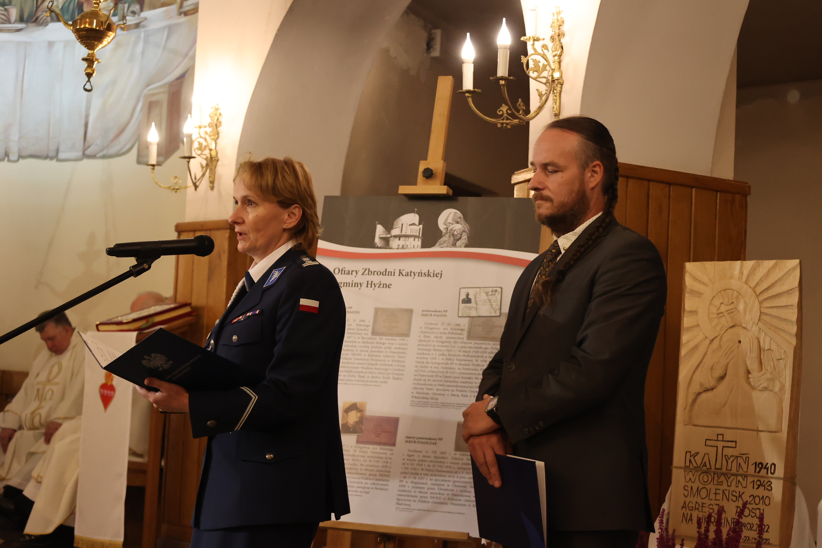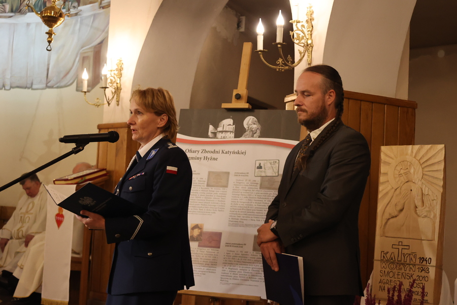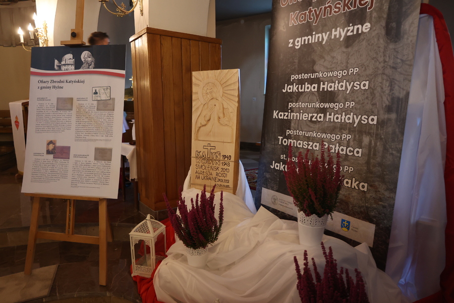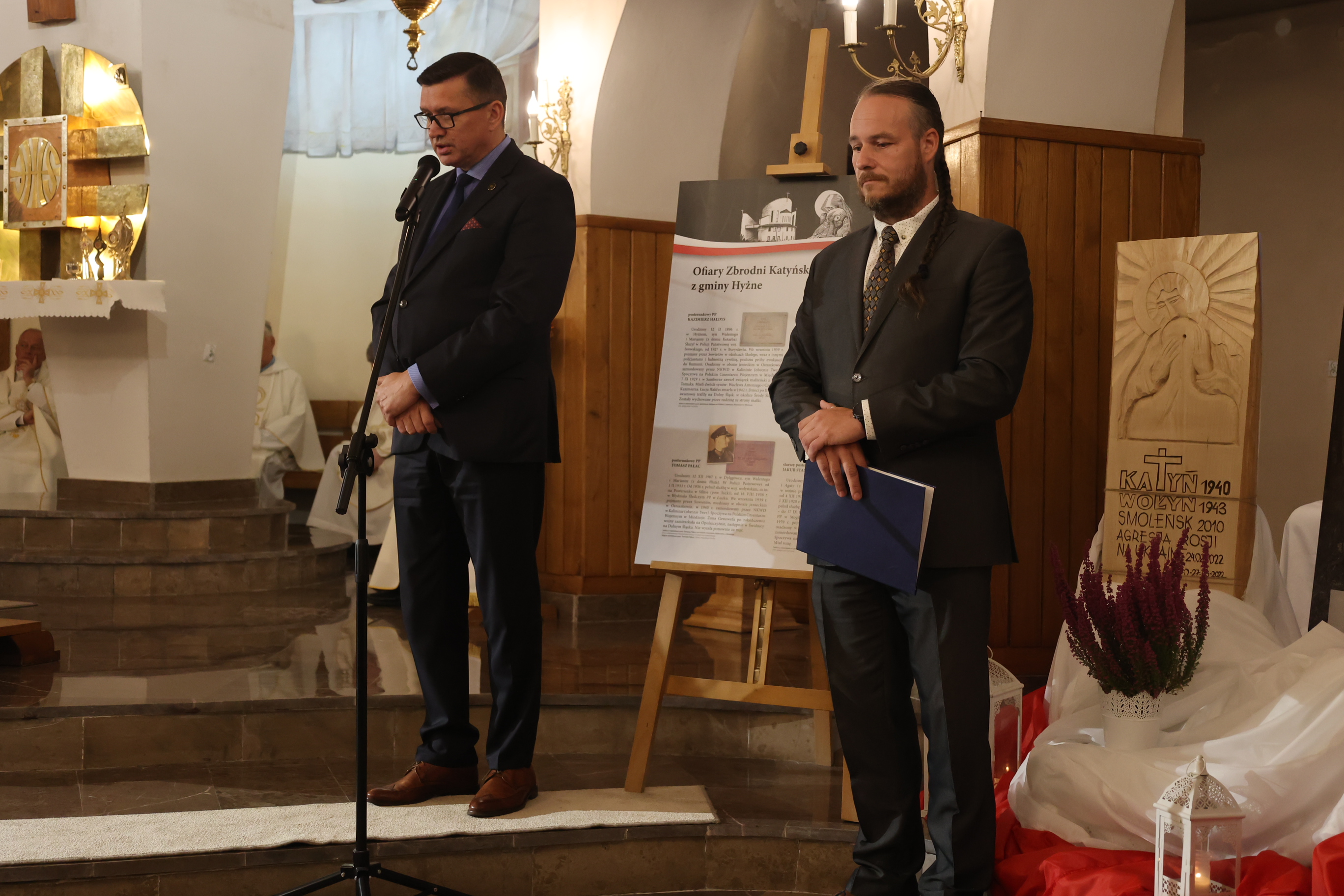 Kolejnym punktem było odsłonięcie i poświęcenie tablicy, która zawisłą na ścianie frontowej kościoła, która upamiętnia Ofiary Zbrodni Katyńskiej z gminy Hyżne: Jakuba Hałdysa – posterunkowego PP, Kazimierza Hałdysa – posterunkowego PP, Tomasza Pałaca –posterunkowego PP i Jakuba Staszczaka – st. posterunkowego PP. W odsłonięciu tablicy uczestniczyli przedstawiciele rodzin zamordowanych policjantów; Bogusława Dziuba, Wanda Jaworska, Anna Karczmarz, Stanisława Starzak, Tadeusz Południak wraz z rodzinami.
