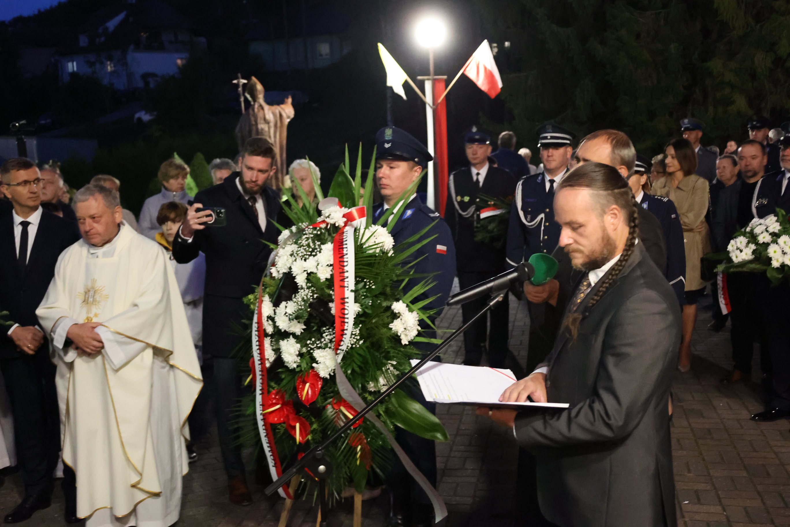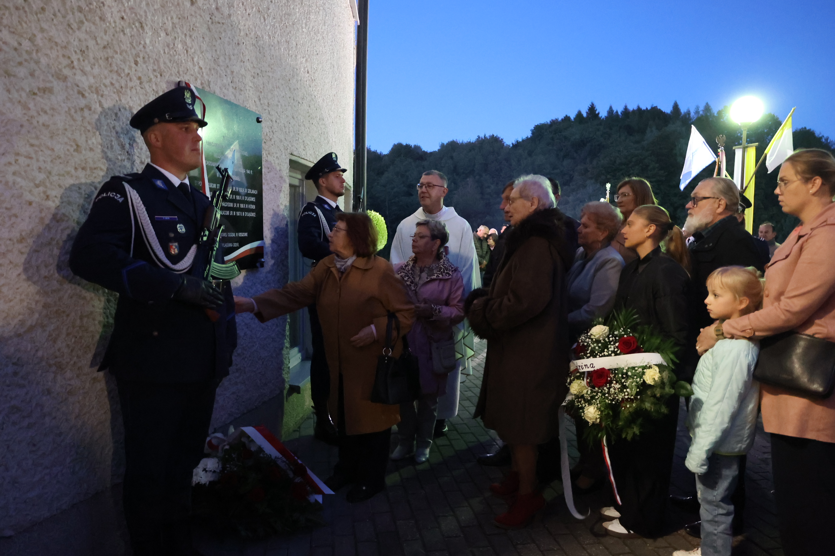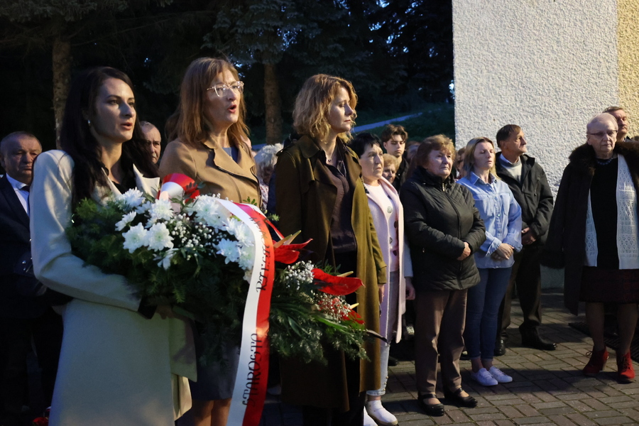 Na zakończenie odbyła się ceremonia składania wiązanek kwiatów i zniczy pod odsłoniętą tablicą.