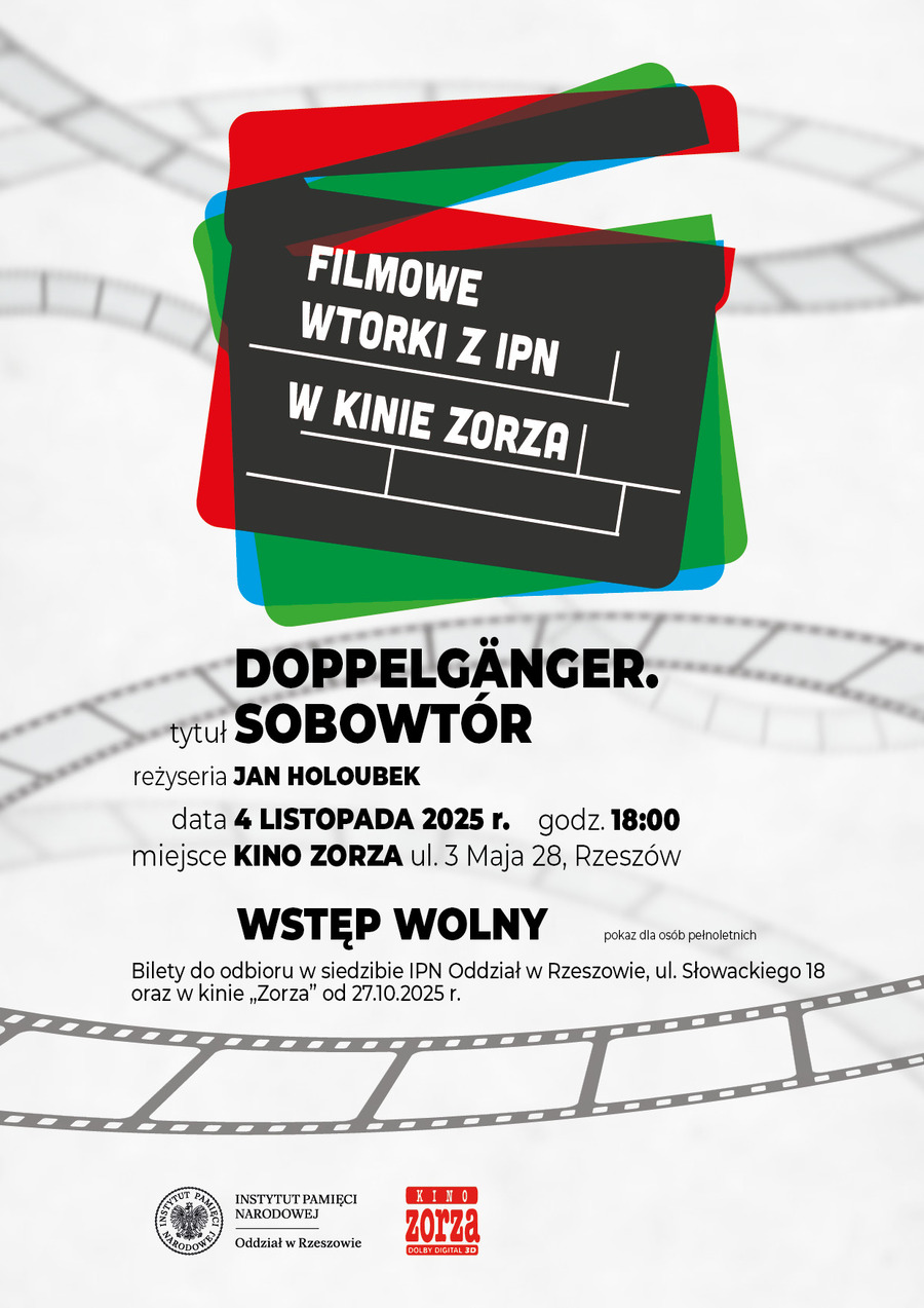 Dostępność biletów do sprawdzenia pod numerem telefonu 17 86 06 054. Odbiór wejściówek od poniedziałku 27 października w siedzibie IPN przy ul. Słowackiego 18 oraz w Kinie „Zorza”.