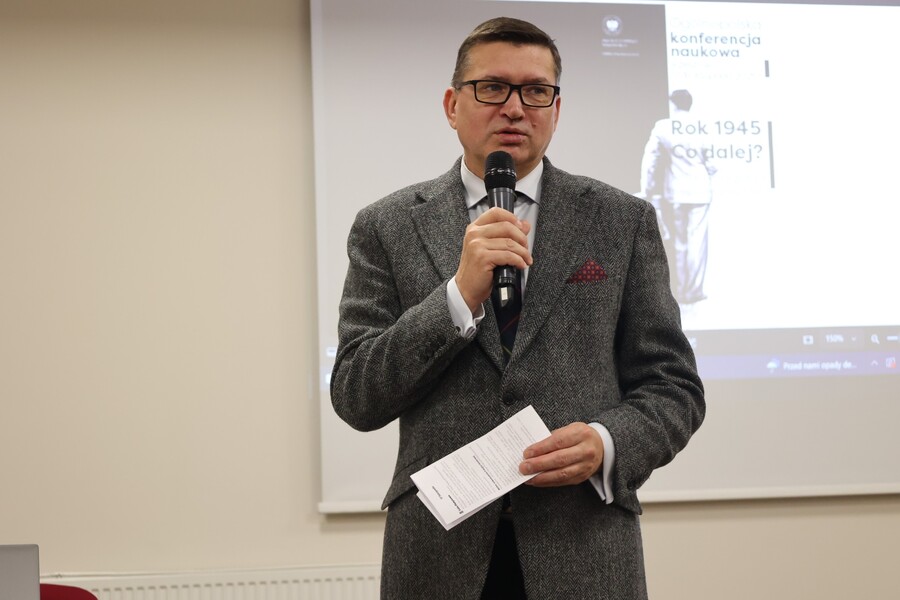 Dr hab. Dariusz Iwaneczko podczas konferencji naukowej „Rok 1945 – Co dalej? ... – Rzeszów, 18 listopada 2025. Fot. Katarzyna Gajda-Bator (IPN) -