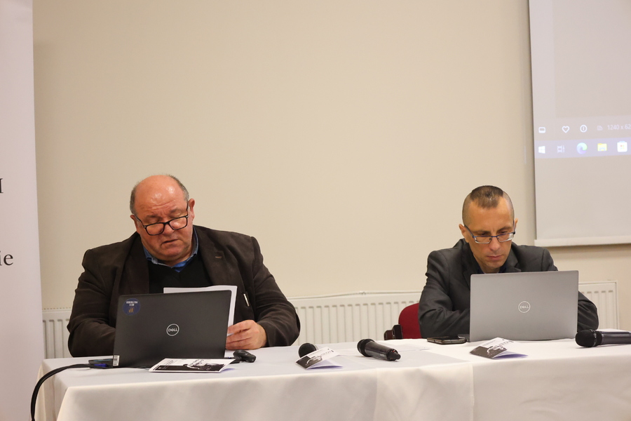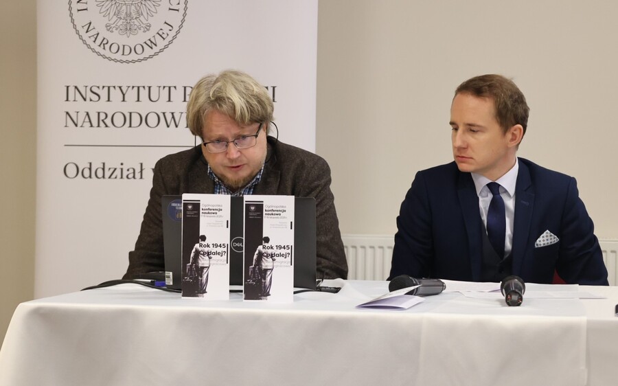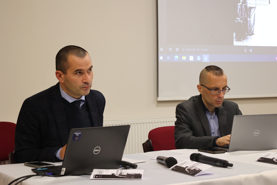 Dr Łukasz Chrobak i dr hab. Patryk Pleskor podczas konferencji naukowej „Rok 1945 – Co dalej? ... – Rzeszów, 18 listopada 2025. Fot. Katarzyna Gajda-Bator (IPN) -