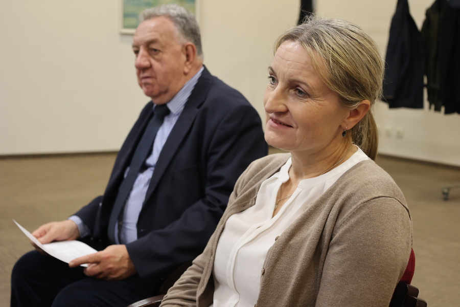 Marek Gajewski i dr hab. Bogusława Wójcik podczas konferencji naukowej „Rok 1945 – Co dalej? ... – Rzeszów, 18 listopada 2025. Fot. Katarzyna Gajda-Bator (IPN) -
