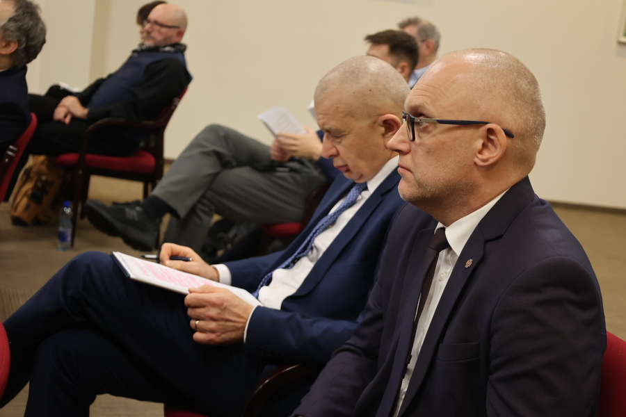 Prof. dr hab. Tadeusz Wolsza i dr hab. Dariusz Iwaneczko podczas konferencji naukowej „Rok 1945 – Co dalej? ... – Rzeszów, 18 listopada 2025. Fot. Katarzyna Gajda-Bator (IPN) -
