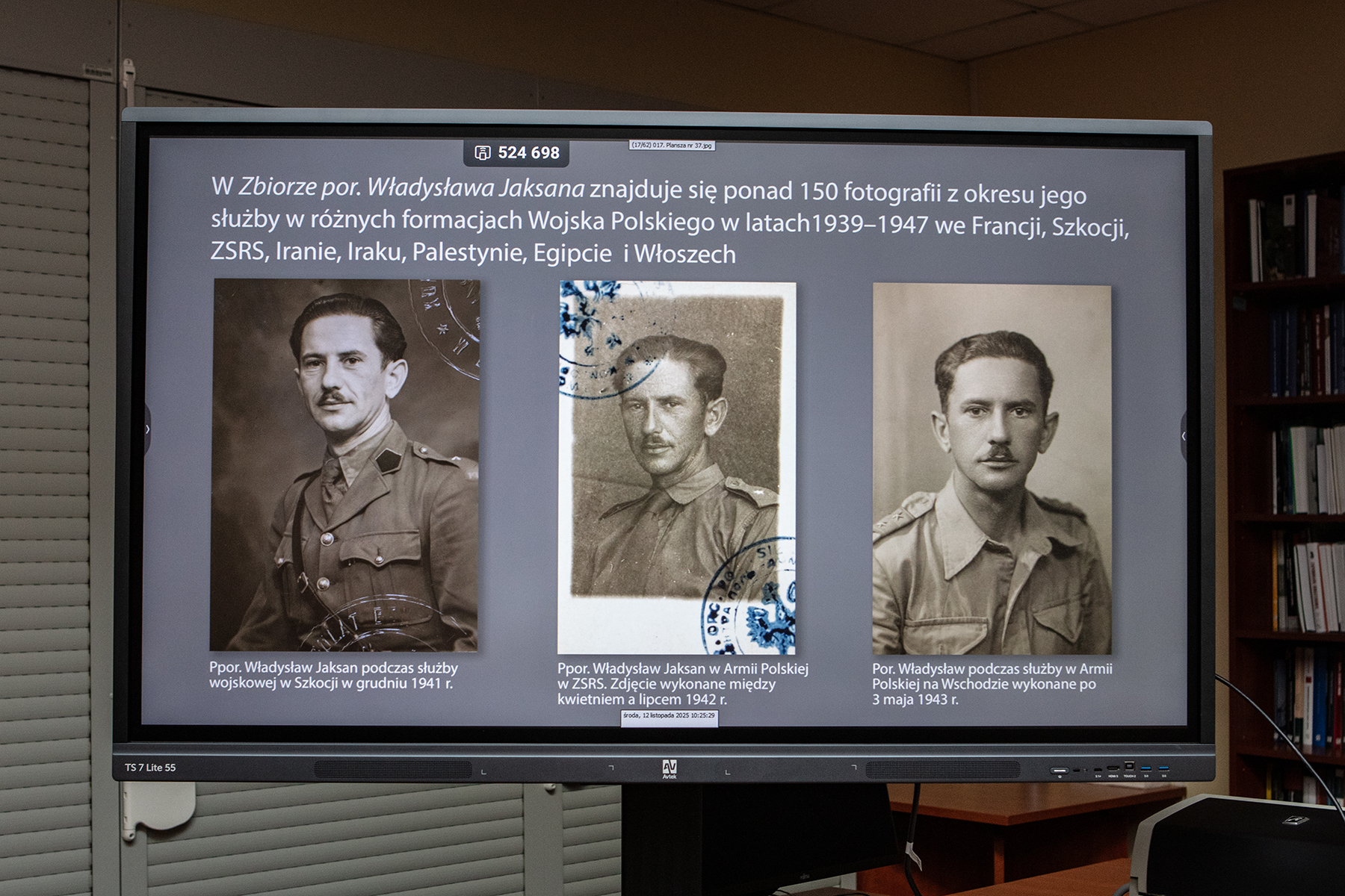 Podczas spotkania Igor Witowicz przedstawił zgromadzonym projekt „Archiwum Pełne Pamięci”. Omówił zasady przyjmowania dokumentów i zdjęć do zasobu archiwalnego IPN. Zaprezentował wybrane zdjęcia, dokumenty i artefakty pochodzące z kolekcji żołnierzy służących w czasie II wojny światowej w Polskich Siłach Zbrojnych: kpt. Edwarda Czwaczki, por. Władysława Jaksana, st. sapera Stanisława Serwańskiego, st. wachmistrza Antoniego Bąka, gen. Witołda Eugeniusza Nowiny-Sawickiego, st. ułana Michała Wąsika i sierż. Tomasza Szafrańskiego.