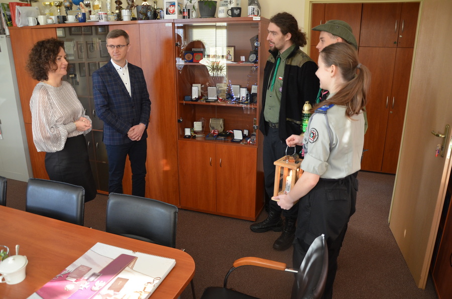 Karolina Michno, naczelnik Oddziałowego Biura Administracyjno-Gospodarczego IPN w Rzeszowie oraz dr Marcin Bukała, naczelnik Oddziałowego Biura Edukacji Narodowej IPN w Rzeszowie przyjęli z rąk harcerzy 16 Drużyny Starszoharcerskiej „Perfekt” Hufca ZHP Rzeszów im. gen. Stanisława Maczka Chorągwi Podkarpackiego Związku Harcerstwa Polskiego Betlejemskie Światełko Pokoju wraz z życzeniami dla dyrekcji i pracowników Instytutu Pamięci Narodowej Oddział w Rzeszowie.