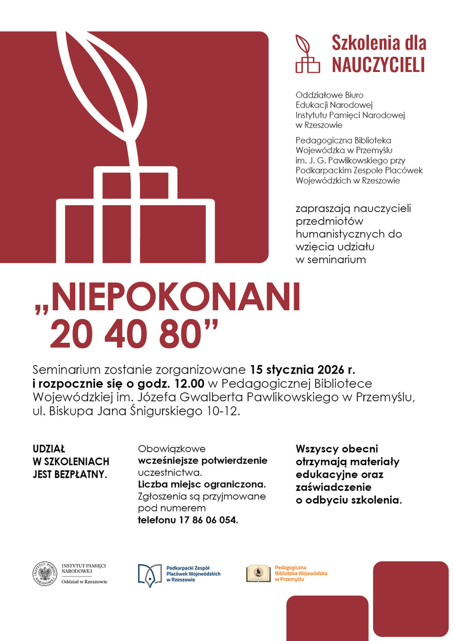 Szkolenie dla nauczycieli - seminarium „Niepokonani 20 40 80” - Przemyśl, 15 stycznia 2026 r.