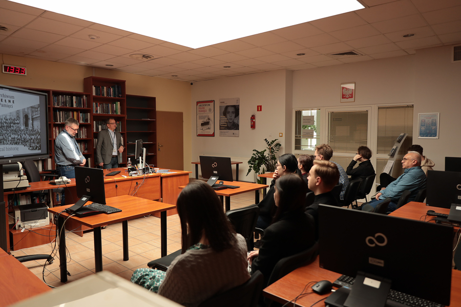 16.04.2026 r. w siedzibie rzeszowskiego Oddziału Instytutu Pamięci Narodowej pracownicy Oddziałowego Archiwum IPN w Rzeszowie gościli studentów I roku studiów magisterskich (archiwistyka) Uniwersytetu Rzeszowskiego pod opieką prof. dr. hab. Jerzego Kuzickiego.