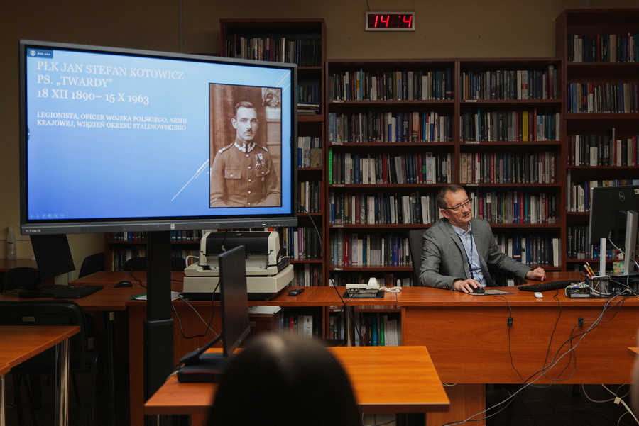Dr Robert Witalec przedstawił dokumenty oraz fotografie ukazujące sylwetkę płka Jana Stefana Kotowicza (1890-1963), związanego z Rzeszowem oficera Legionów Polskich, Wojska Polskiego, dowódcy 27. Wołyńskiej Dywizji Piechoty AK, więźnia okresu stalinowskiego. Zaprezentowane materiały zostały przekazane (w wersji elektronicznej) do zasobu archiwalnego rzeszowskiego oddziału IPN przez członków rodziny płka Kotowicza w ramach projektu „Archiwum Pełne Pamięci”.