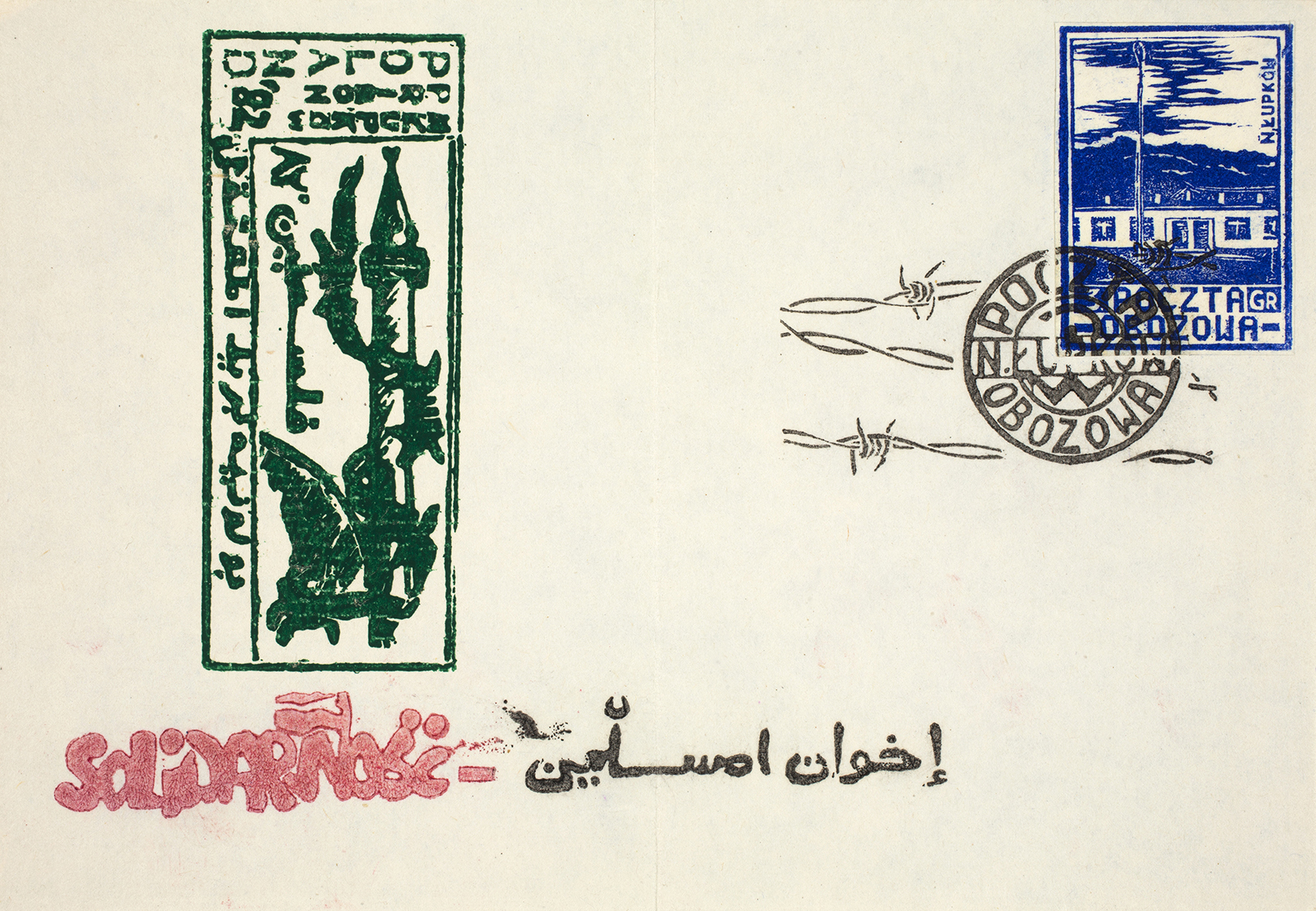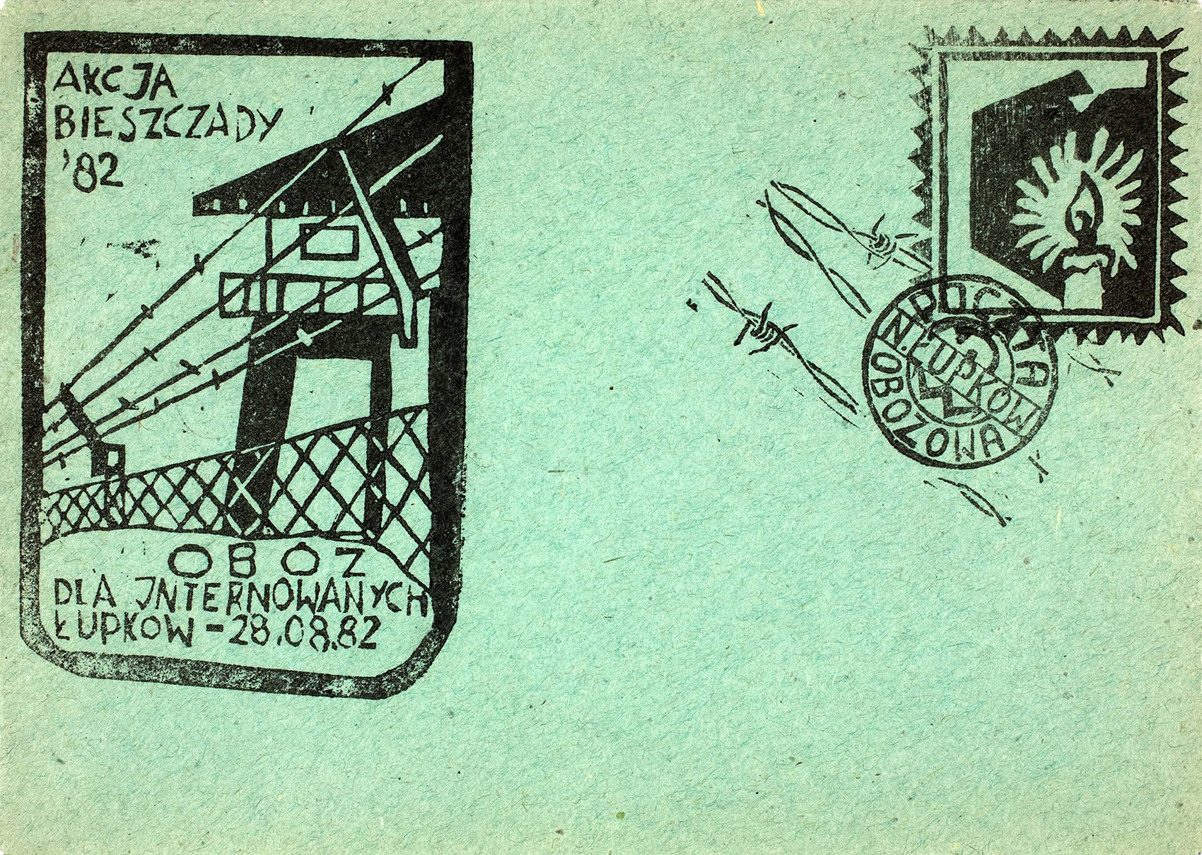 Zdjęcie 025. Kartka wykonana w 1982 r. w obozie dla internowanych w Nowym Łupkowie. Ze Zbioru Tadeusza Kensego.