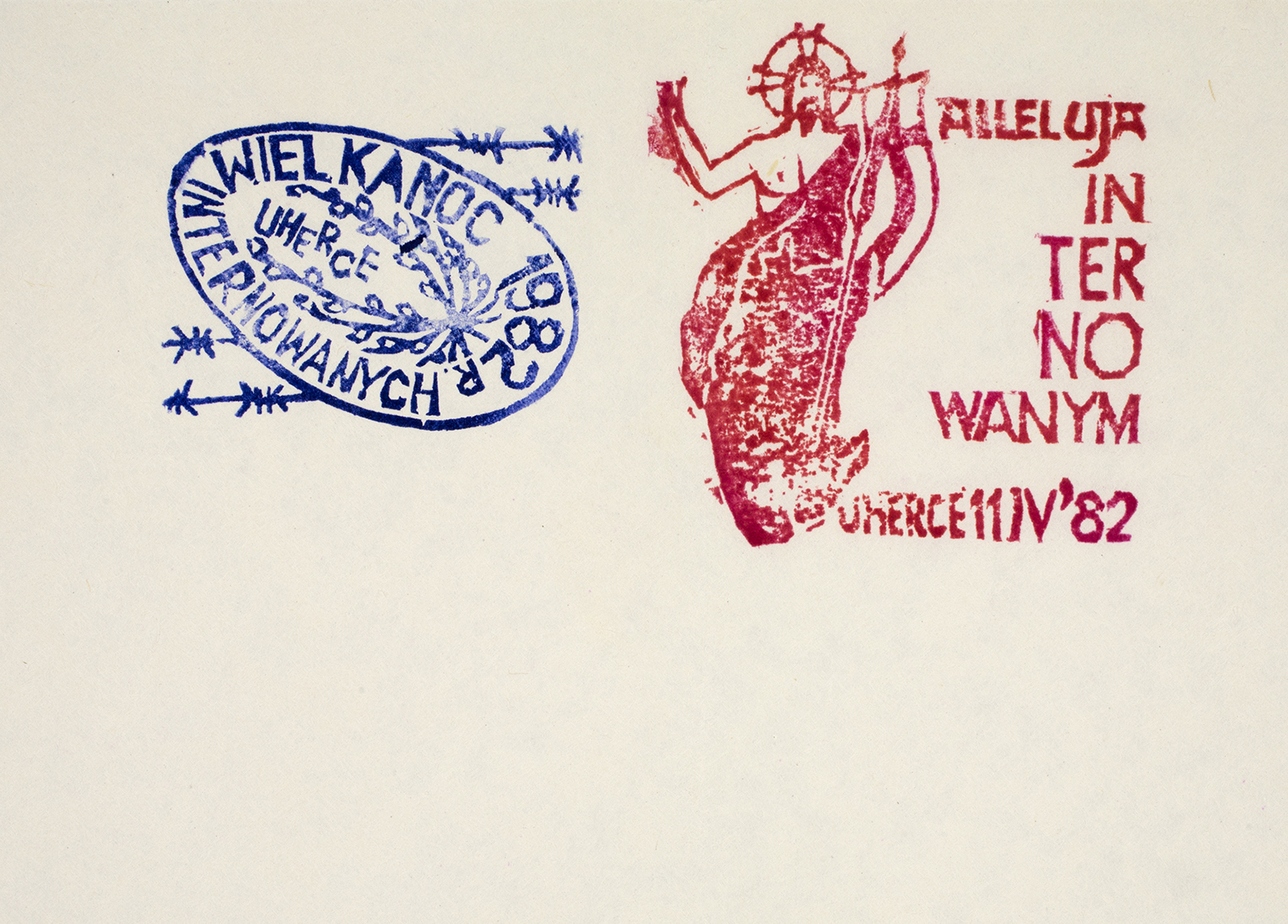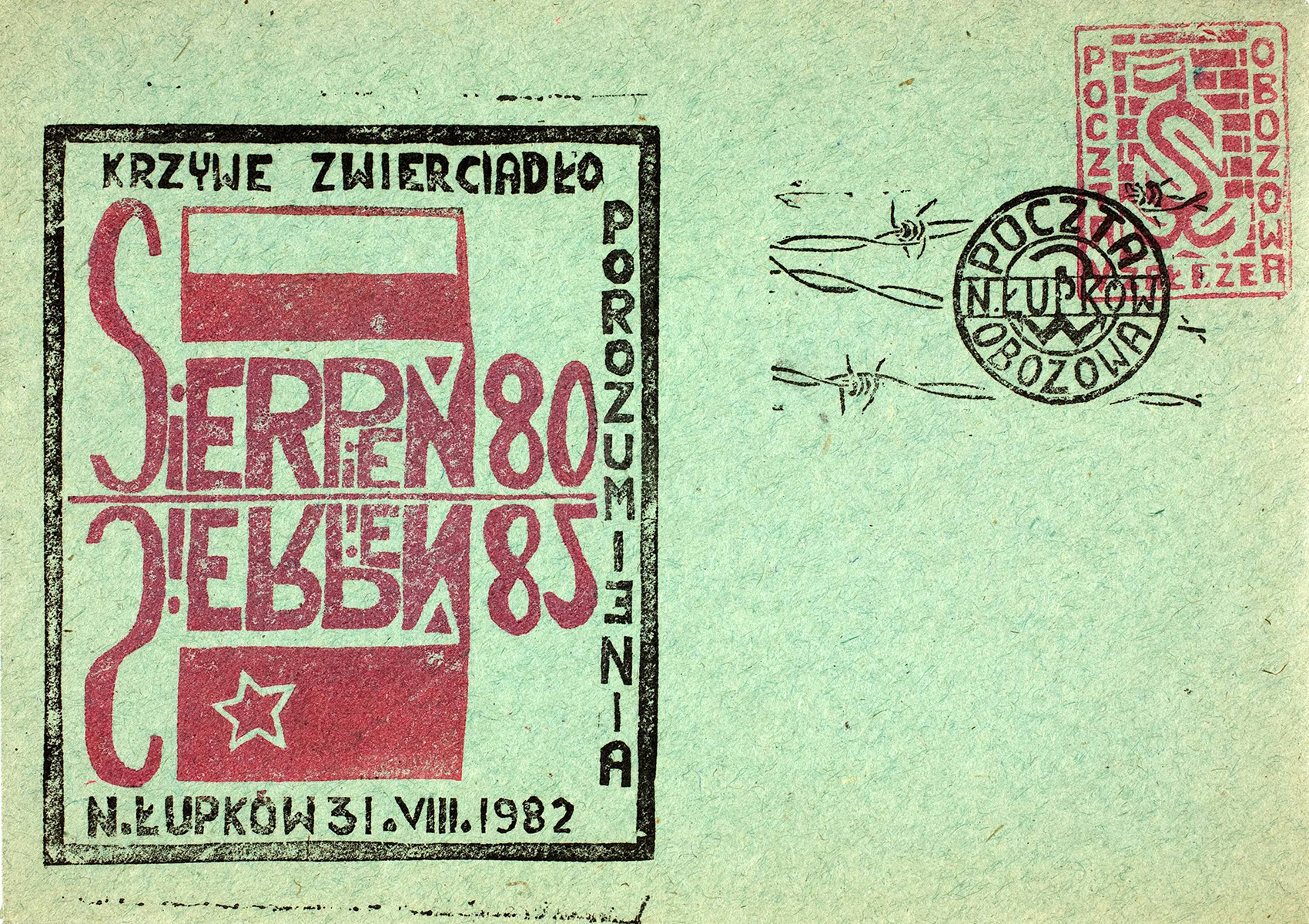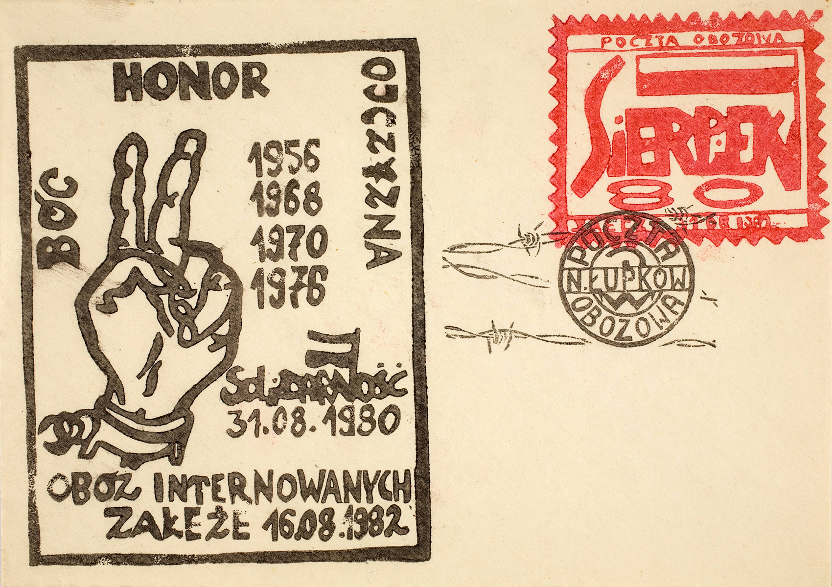 W zasobie archiwalnym Oddziałowego Archiwum IPN w Rzeszowie znajduje się wiele pamiątek wykonanych przez więźniów politycznych podczas tak zwanego internowania, czyli uwięzienia w ośrodkach odosobnienia po 13 grudnia 1981 r., czyli od chwili wprowadzenia w Polsce stanu wojennego. Więźniowie potrzebowali nadziei, potrzebowali też zajęcia, twórczej pracy, modlitwy. Wzajemnie się kształcili, tworzyli tajne mini-drukarnie, w których robili nadruki na kopertach, kartkach pocztowych, na płótnie. Matryce robili z drewna i gumoleum, farba była przemycana na różne sposoby. Twórczość internowanych była bardzo bogata. Nie sposób jej pokazać w całości, dlatego dzisiaj chcemy zaprezentować Państwu kilkadziesiąt przykładów tej twórczej aktywności ludzi „Solidarności”.